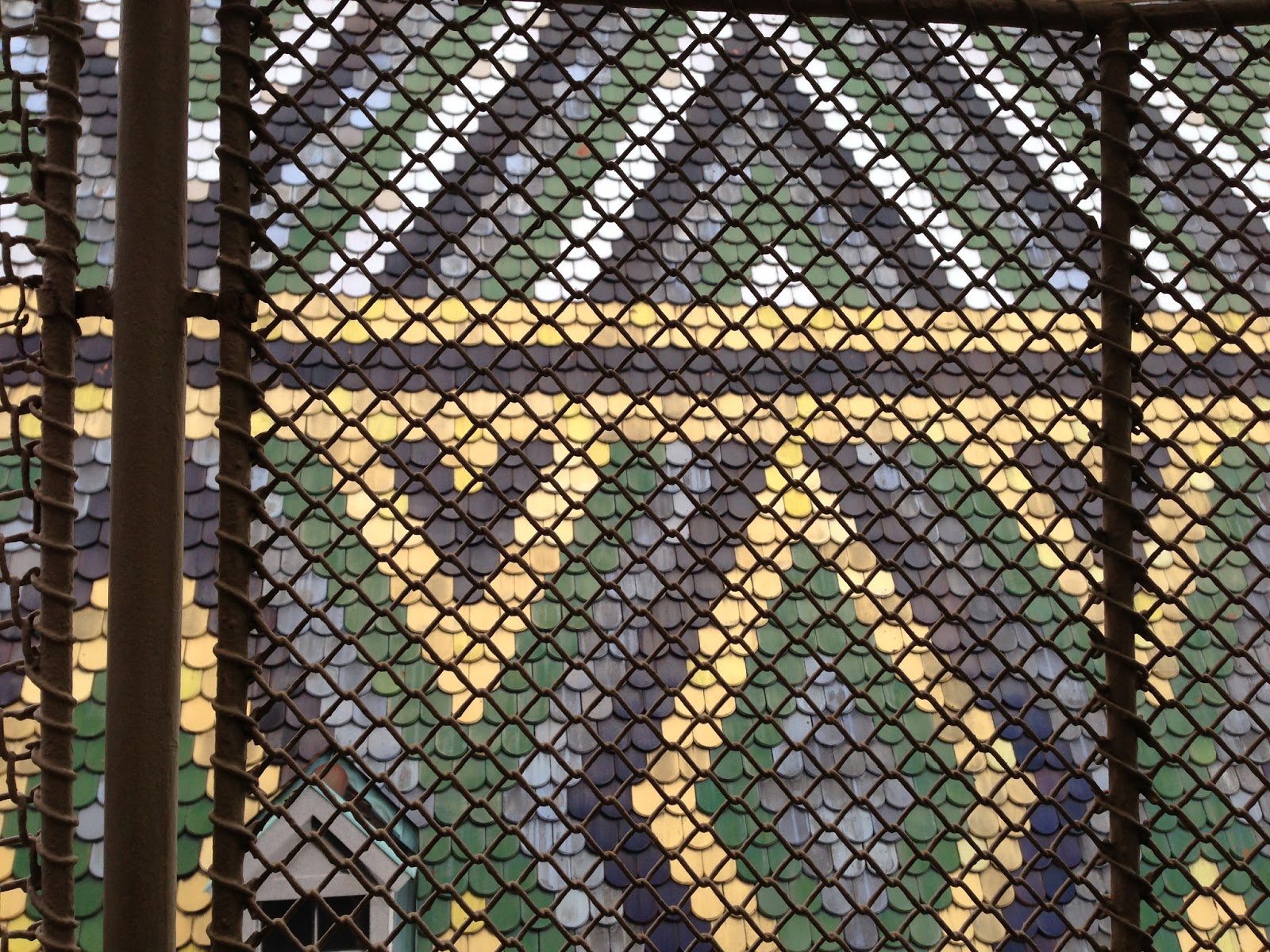 Five euros buys you a ride on a small lift to the top of the main cathedral (not the tallest tower). From there, the colored tiles of the roof are clearer--and definitely large.