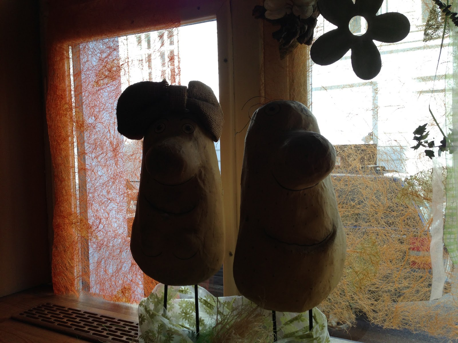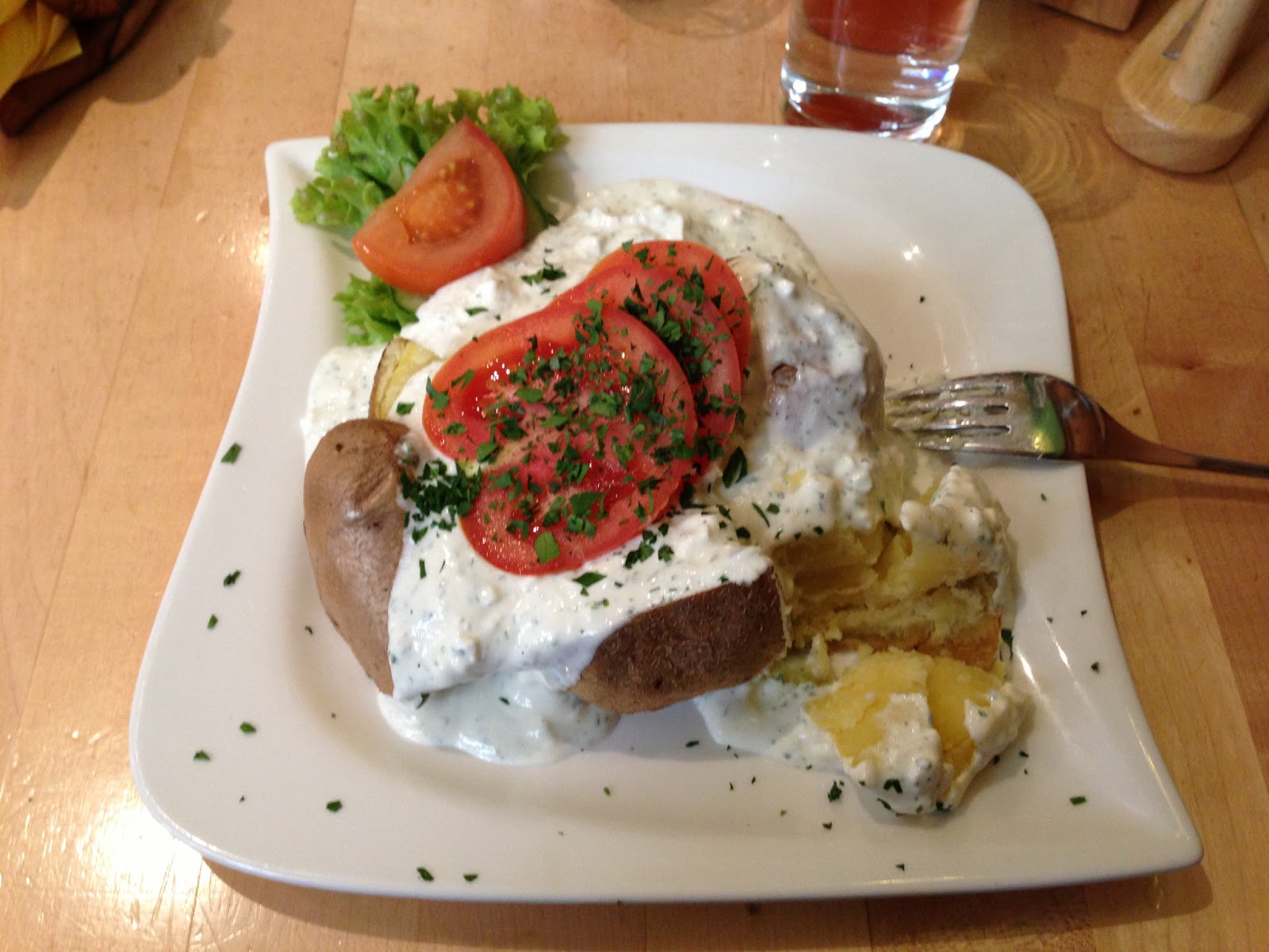 Click on any image to see a larger version.Lunch was at a random restaurant down a side street, a place that turned out to specialize in potatoes (mains) and apples (desserts). This odd little eatery was full of people speaking German, which is a good sign, and featured in two different places the large and strange Ms. and Mr. Potato.