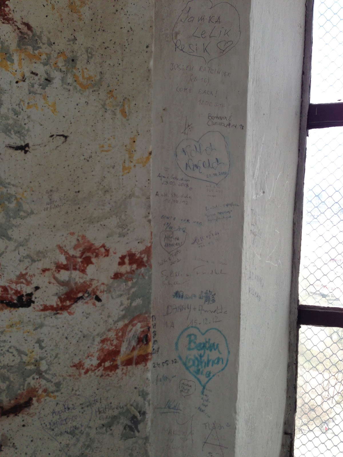 A lift takes you to a platform from which you have a great view of the interior. From the platform, 11 sets of 11 steps each (isn't 11 just a great number? I quite like it) take you up into the top of the dome. The views of the city from there are great, but what you see on the inside is a sad reminder that people everywhere can't resist marking historical objects.