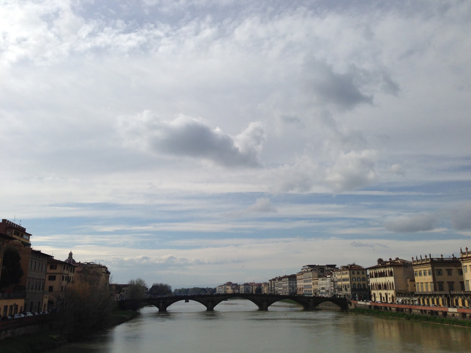 The skies here are, as I've observed before, simply amazing. Standing on the Ponte Santa Trinita and staring back at the Ponte Vecchio, the sky in mid afternoon was nearly clear and washed from horizon to zenith in shades of deepening blue.