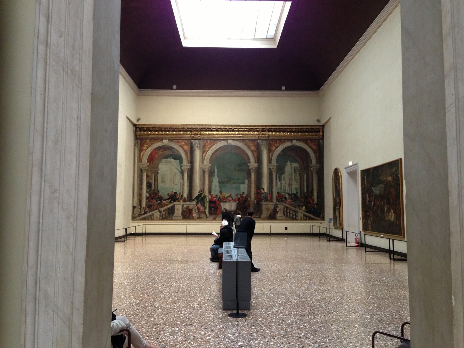 In one room of the Accademia, one very big room, stands the largest known oil painting, a huge piece by Veronese.