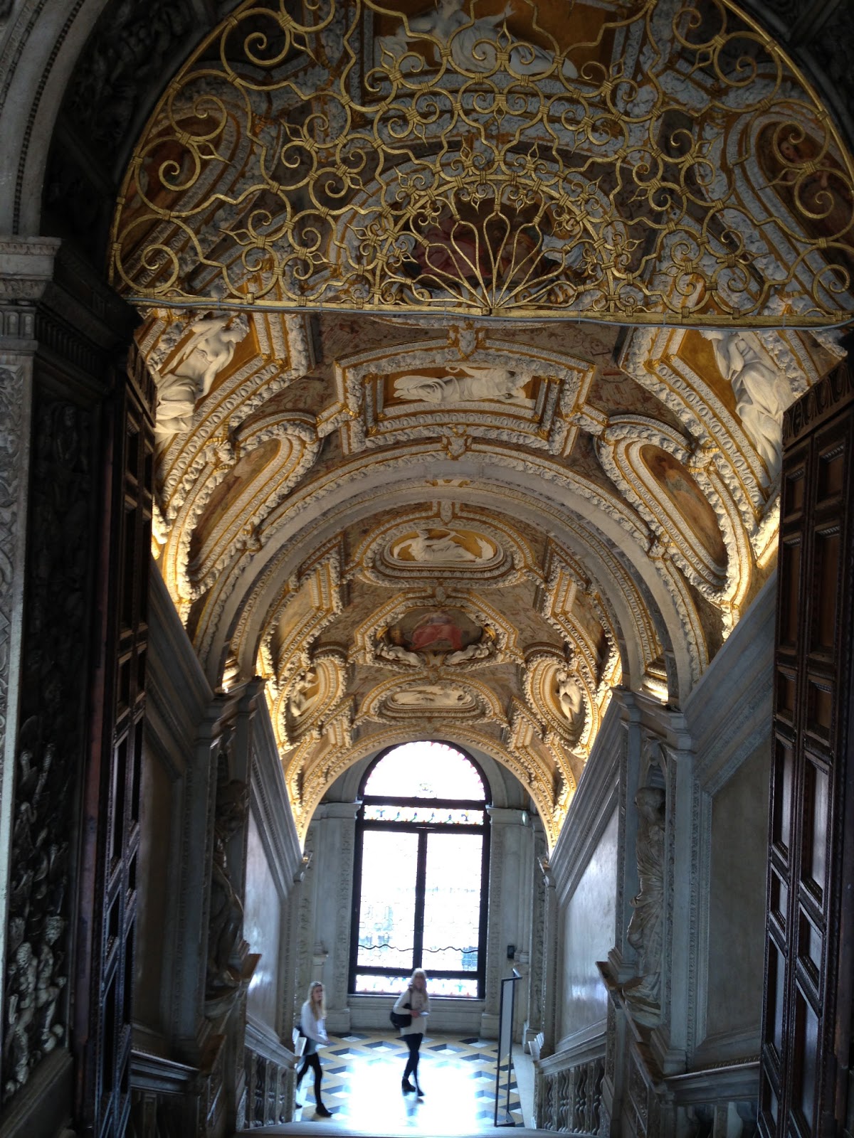 The paintings in this room, including the Il Paradiso huge piece at the far end, were by the next generation of painters, Tintoretto's son and the students of the masters who painted the works in the other rooms. These guys just were not as strong as the best of the previous generation, but the art is mind-bogglingly complex and impressive nonetheless.