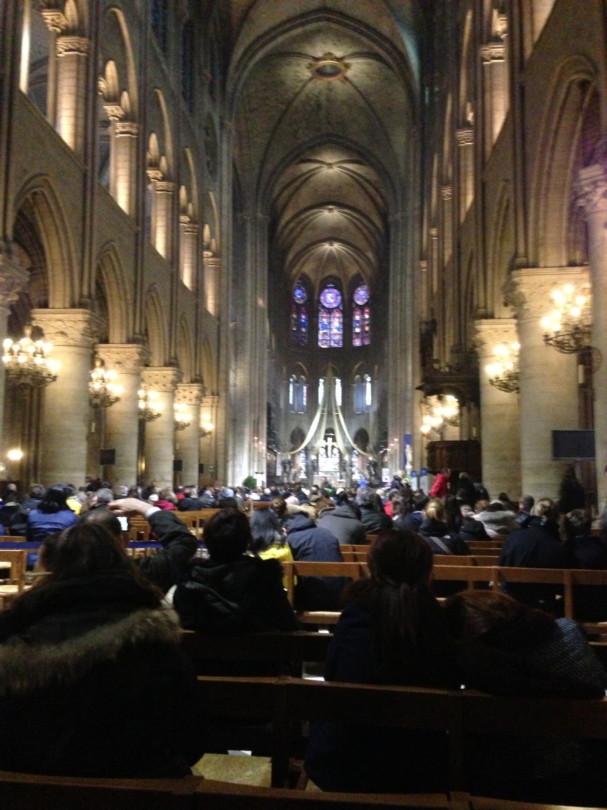 This year, Paris is celebrating the 850th anniversary of Notre Dame. This shot is from the last row of seats, during a service today.