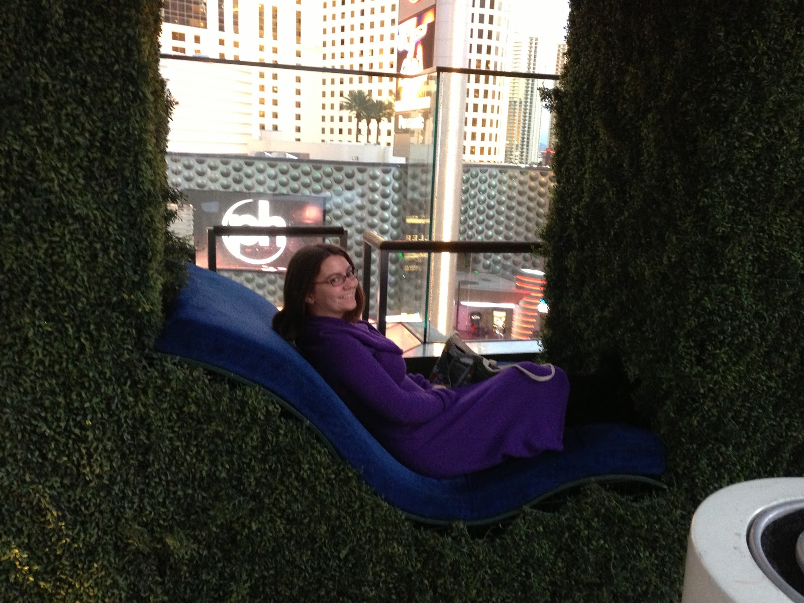 As always, click on an image to see a larger version.Later, at Cosmpolitan's rooftop club and skating rink, Princess Fancy (so self-named after I declared myself, "Mr. Fancy") reclined in the best outdoor snuggling seat in Vegas.