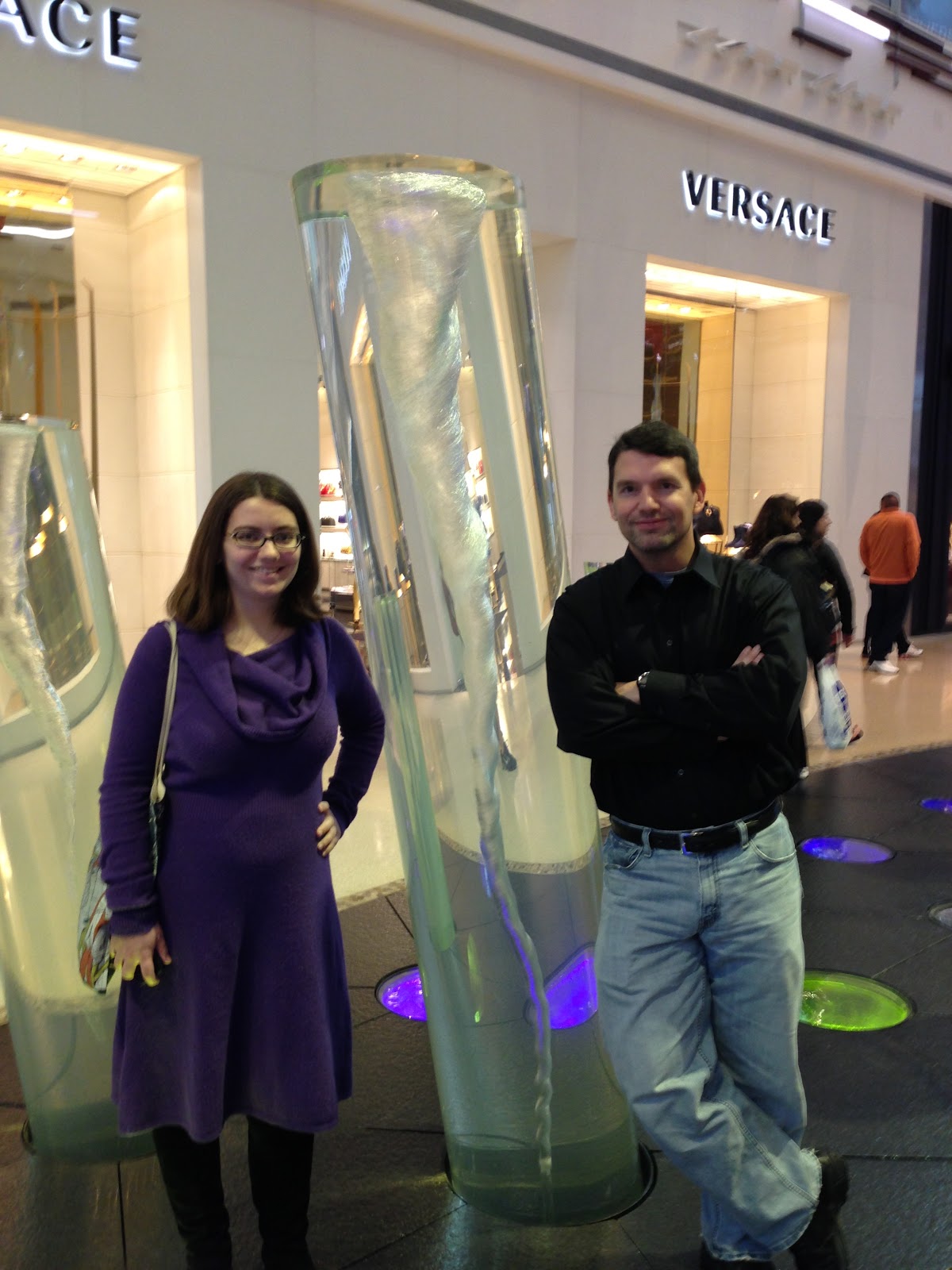 Such as this one, of Kyle and Sarah standing near a water tornado exhibit that sits for no good reason on the floor of one shopping area in Crystals, the fancy shopping space between Aria and Cosmopolitan.