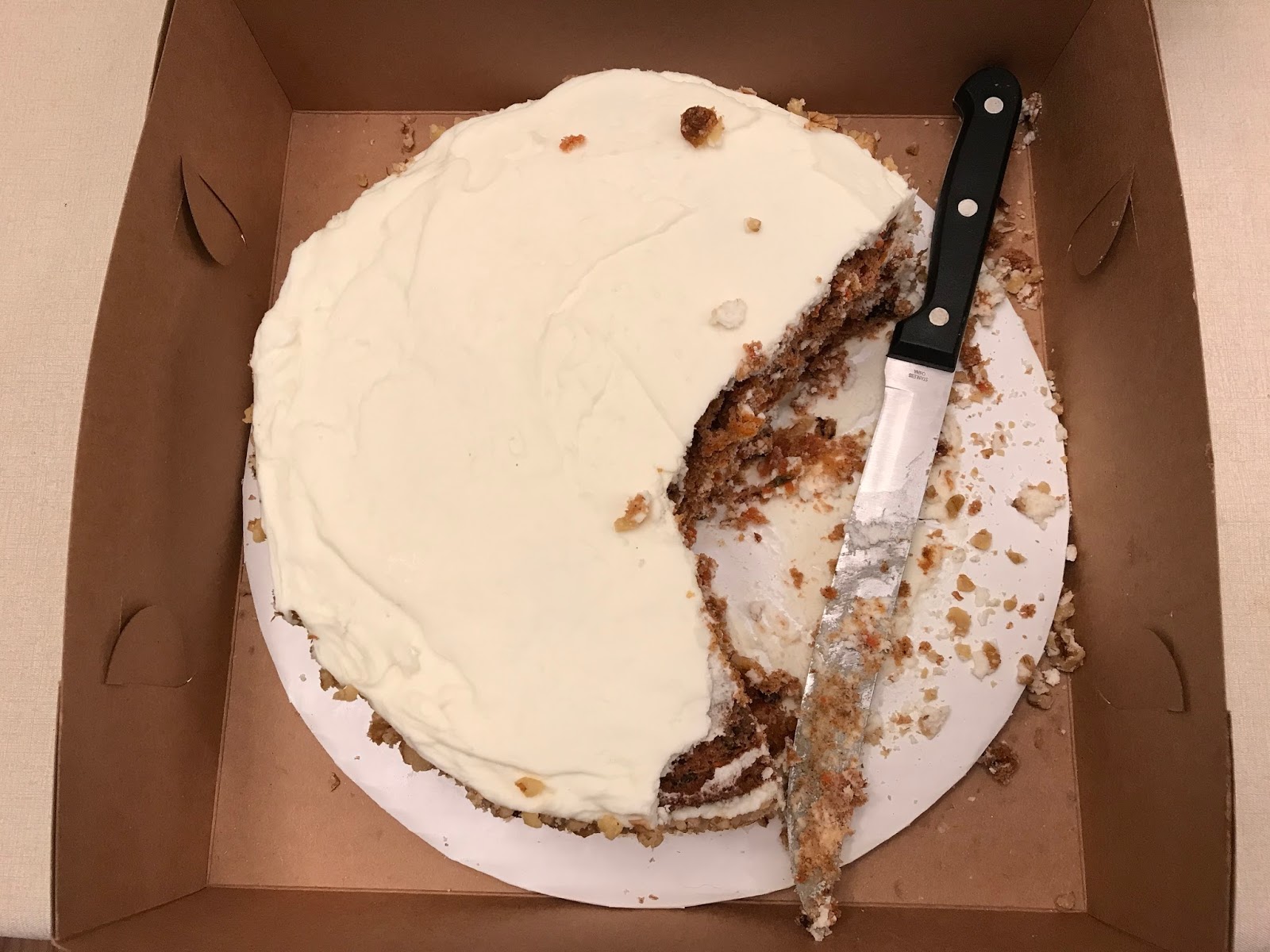Over 24 hours have passed since our first brave eater cut into the massive slab that is the BobCake. Many more cuts has the BobCake endured, and yet it abides.