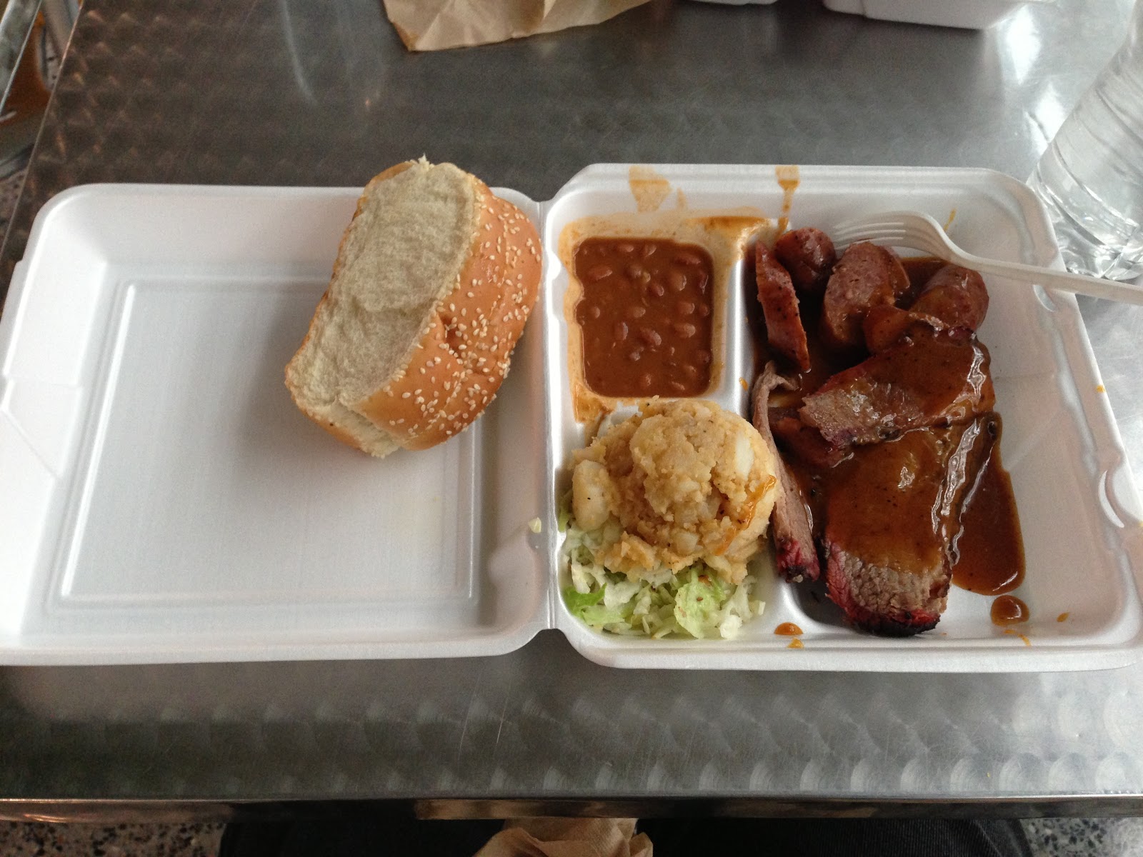 Austin's airport has to be one of the best anywhere, because it has both an Amy's Ice Creams shop and a Salt Lick BBQ, both of which are terrible for my health but amazing for my mood. Thanks to the Salt Lick, I was able to enjoy this sausage and brisket combo for lunch.