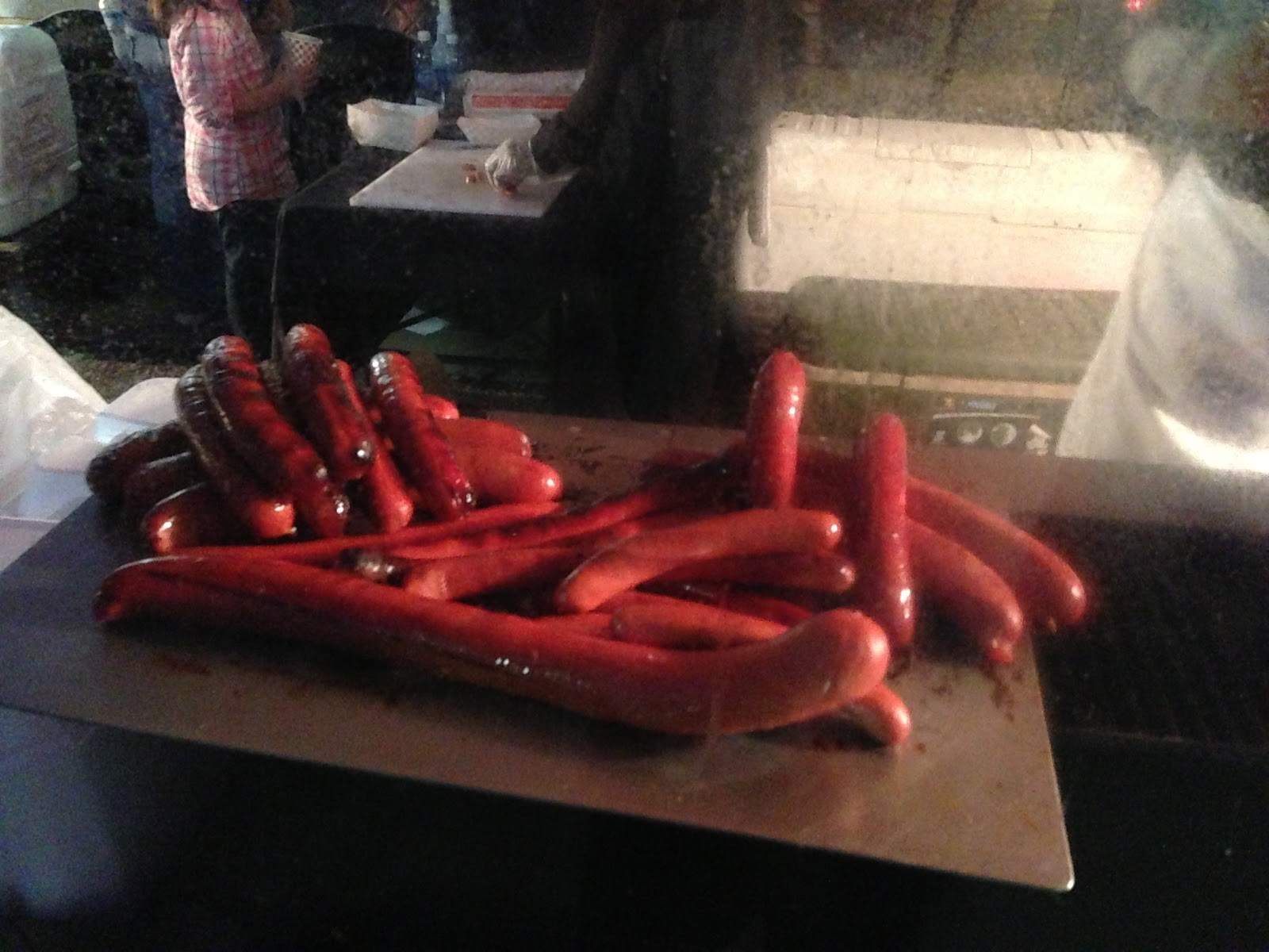 Several of us shared a quarter-pound hot dog with cheese from the best local hot dog maker, whose name I have sadly forgotten, but I forgot to take a picture of it. So, as we walked back by the stand after seeing the chickens, I snapped this photo of some freshly grilled dogs.