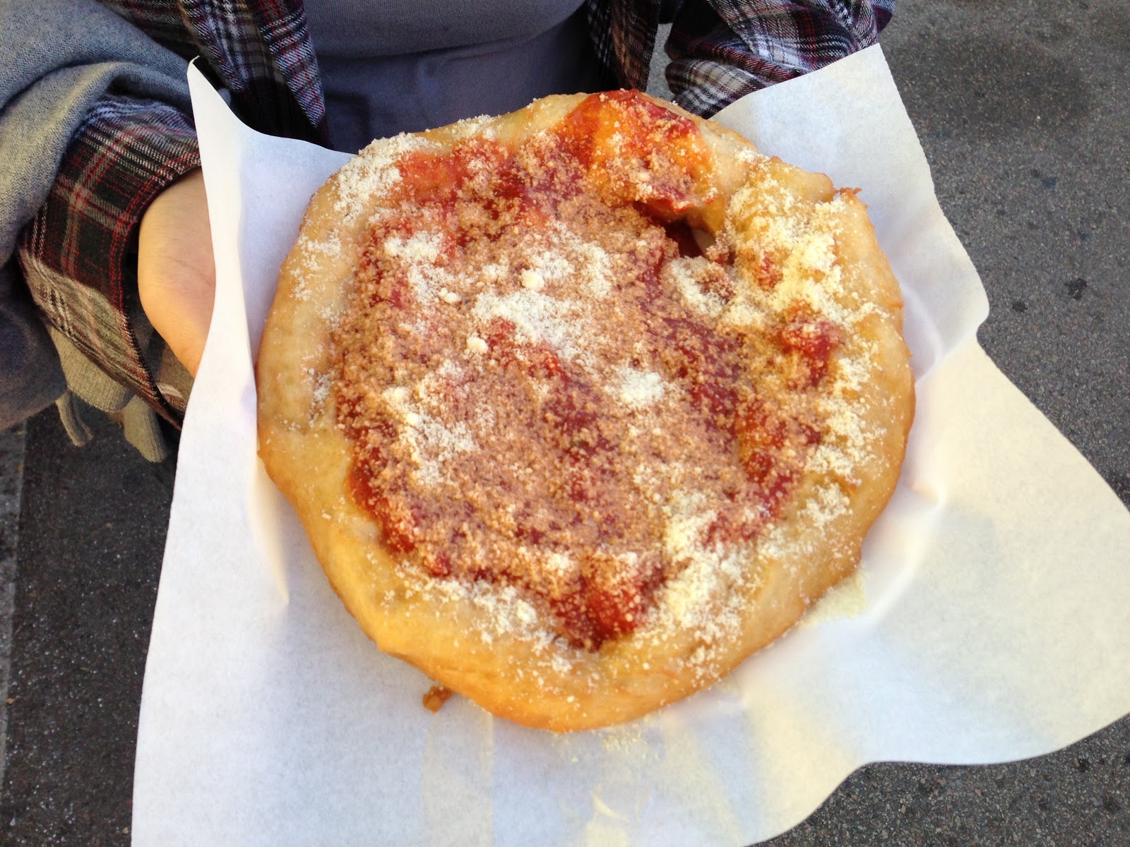Basically, it was just pizza sauce and cheese on a funnel cake. I thought it was tasty, as did Sarah, but some felt it had not earned the name "pizza." I must disagree with them.