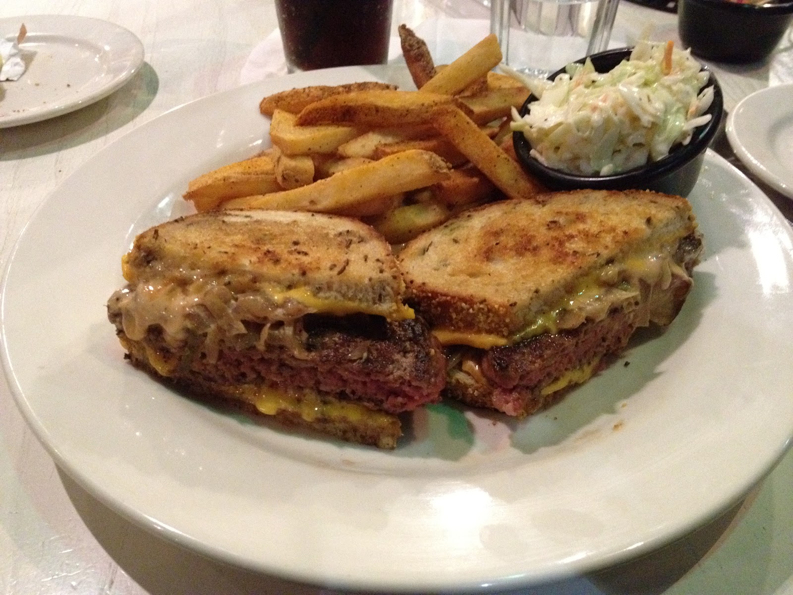For dinner tonight, a small group of us went to the nearest Max's, where I stuck to tradition and ordered their absolutely delicious patty melt. The sandwich did not let me down. As soon as it arrived, as always I took this picture (click on it to see a larger image) and emailed it to my friend and colleague, Elizabeth, to torture her.