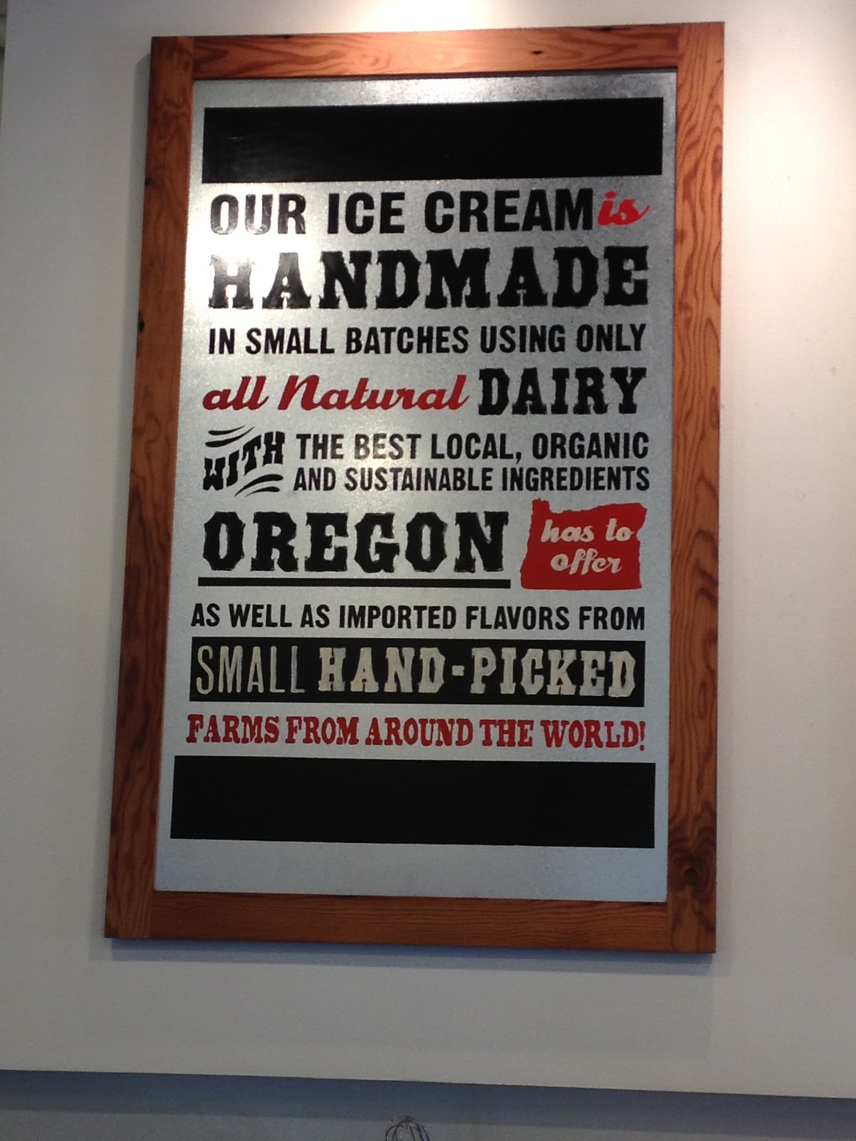 Salt & Straw may be my new favorite ice cream shop. It is certainly among my top five anywhere. Set in a corner of a corner building in a funky Portland residential-and-commercial area, it greeted us with open walls along most of one side and most of the front. One of the breed of locally sourced ice cream makers, it proclaimed its mission loudly.