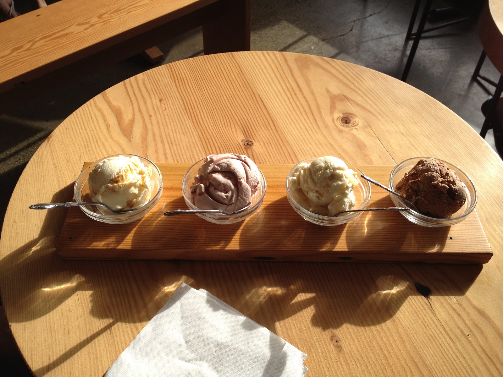 Yes, I did it for you, dear readers: I ordered a flight so that I could report with some authority on the ice creams here.
