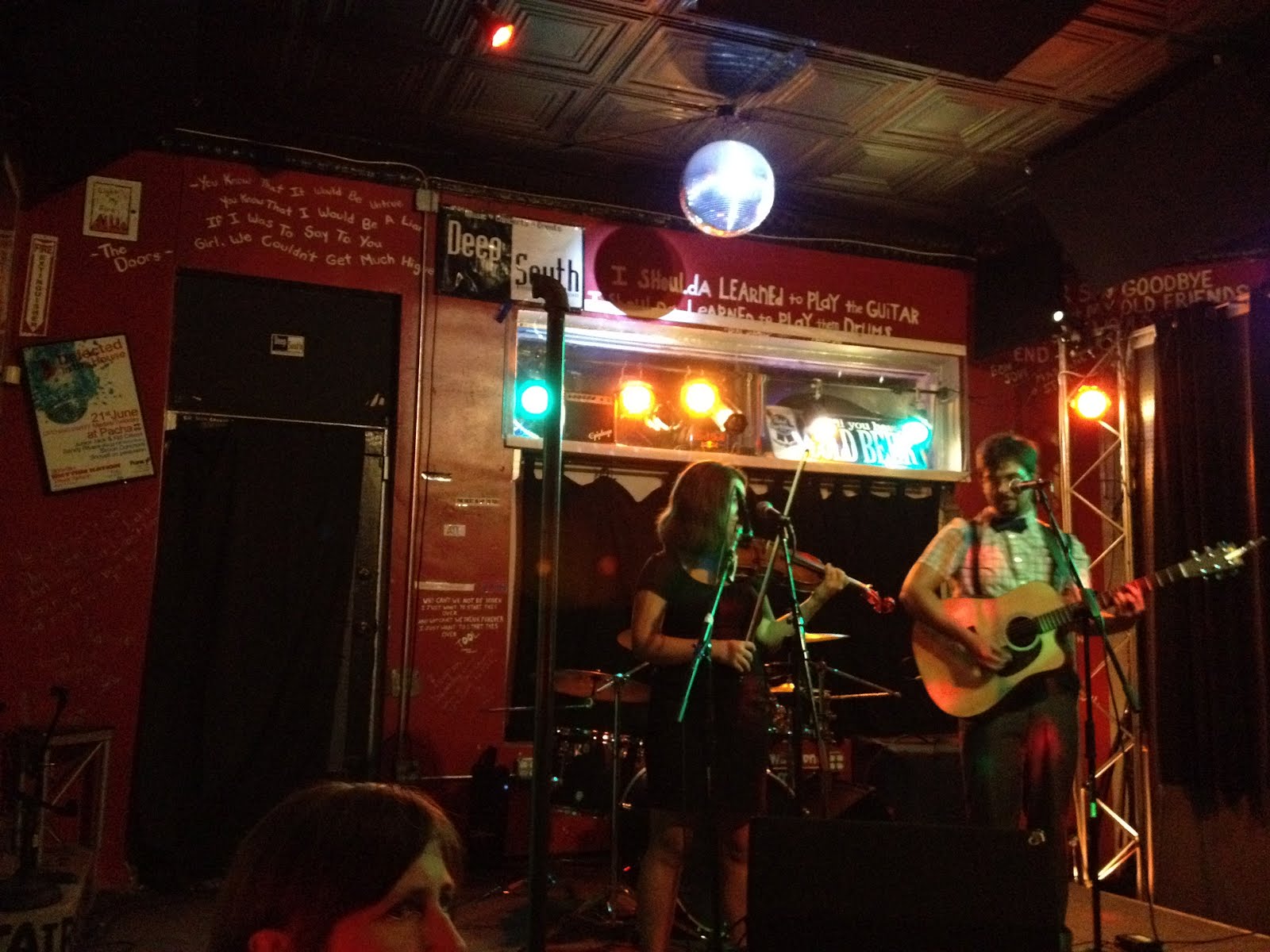 As I mentioned in yesterday's entry, earlier tonight we went to see Sarah and Ben, in their guise as The Camaraderie, play at the Deep South Bar in Raleigh. They were the first of four bands and the only one I had the chance to see. (We had to leave not long after their set due to some previously committed and important early-morning obligations.)
