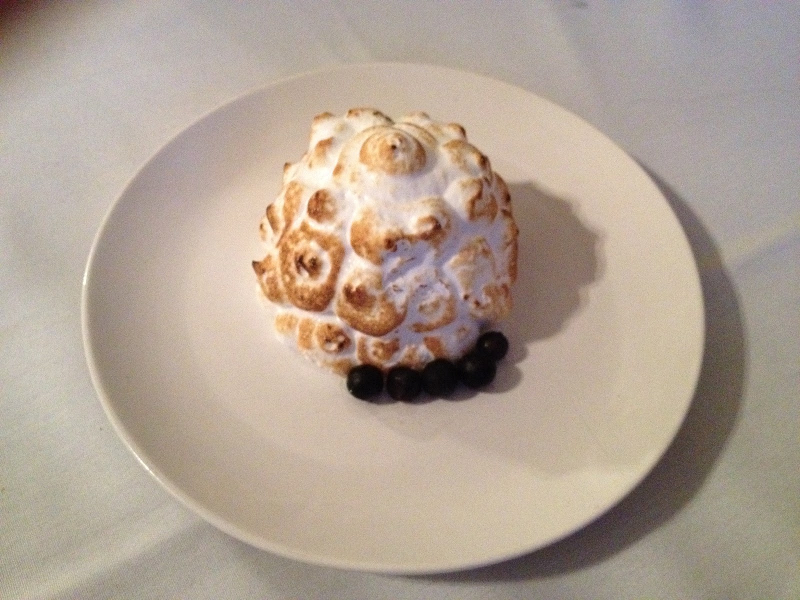 That was a good choice. We sampled four of the desserts, and all were tasty, particularly the blueberry pie. The tiny baked Alaska with sorbet interior was a surprisingly successful riff on this classic dish.