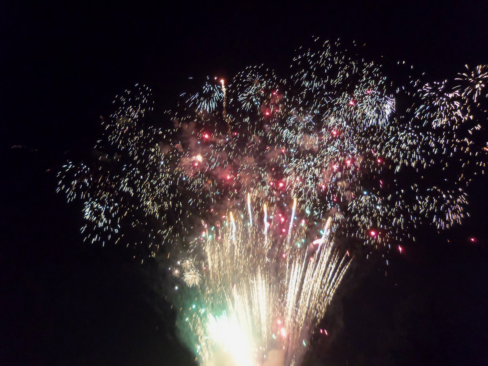 I'll write more tomorrow, but for now, I will leave you with two more pictures from the fireworks show, this time courtesy of Derwood. As always, click on a picture to see a larger image.