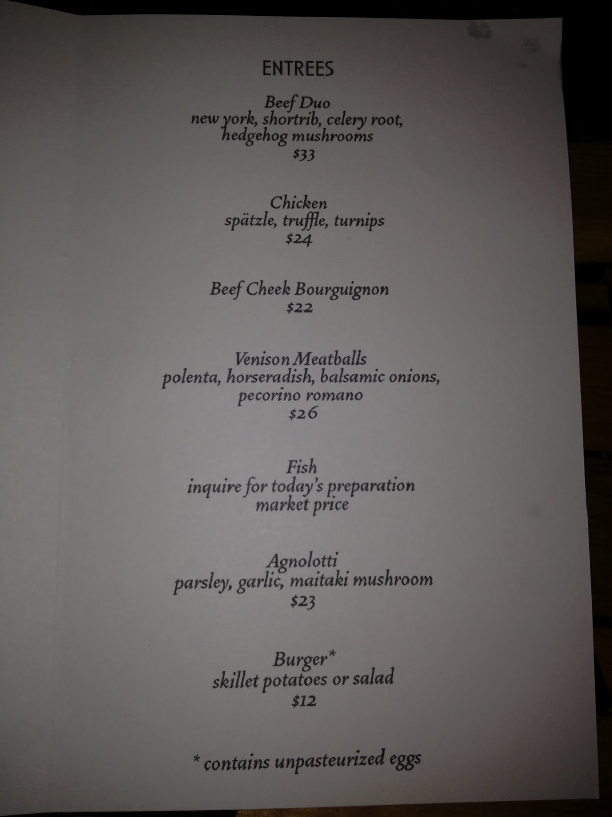 The main menu gives you a sense of the variety and sensibility of Le Pigeon.