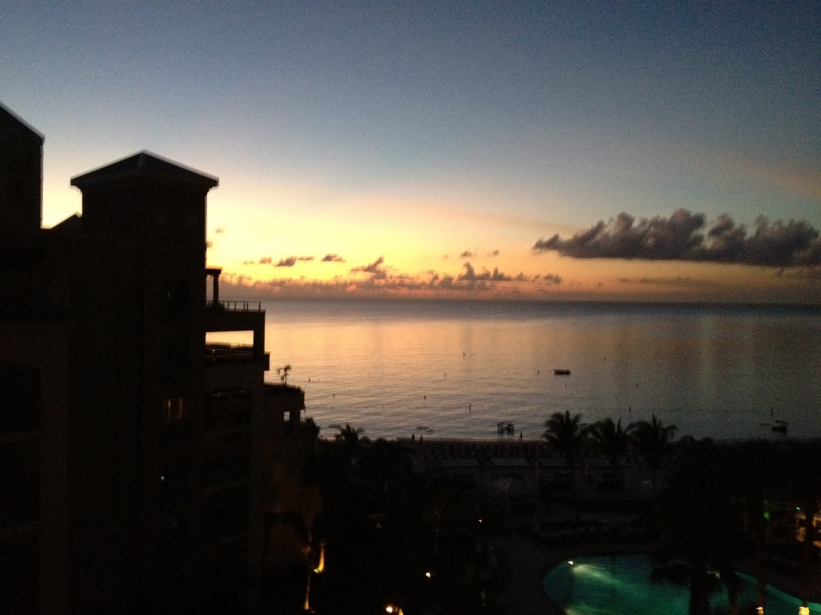 The Ritz-Carlton Grand Cayman is about as nice as a resort hotel can get, which I am here to tell you is pretty darn nice. After a late poolside lunch, I worked, rested a bit, and then caught this view of sunset from my oceanfront room.