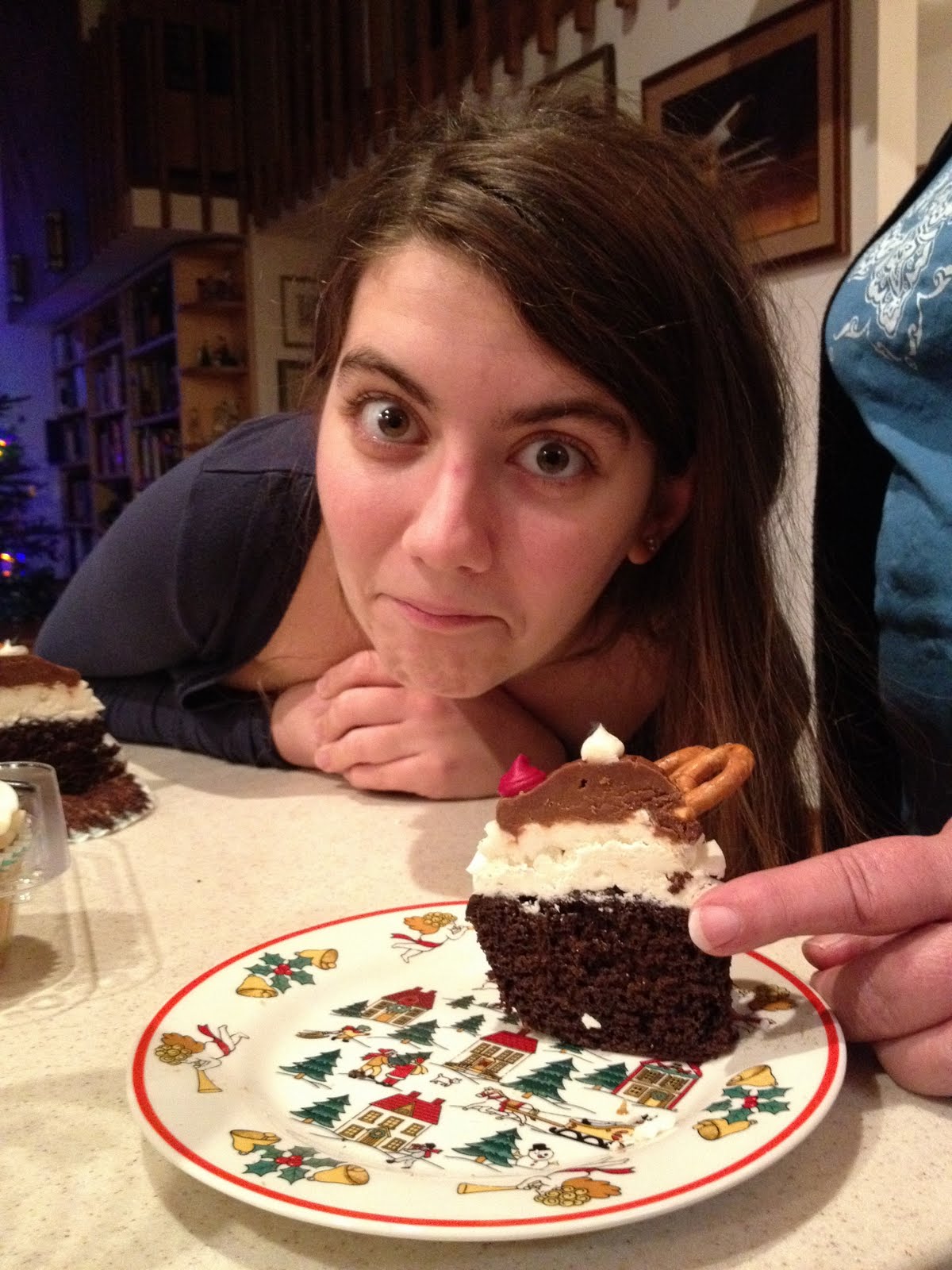 As Sarah's expression may tell you, everything above the chocolate bit is frosting.