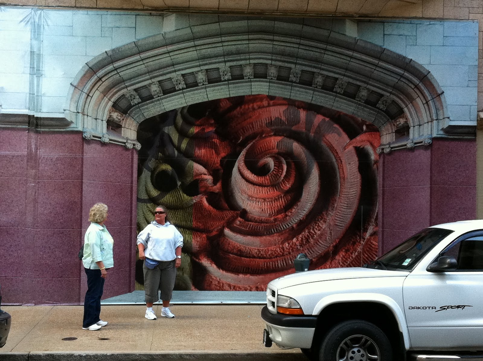The walk to and from the place gave me time to check out a bit of the downtown. A great many buildings appear to be unoccupied or barely occupied, as if a wind from the depression had blown through here and taken many of the businesses with it. Other streets showed the effects of real estate developers smelling opportunity, with loft-style condos for sale in building after building. The economy has clearly not been gentle with St. Louis.