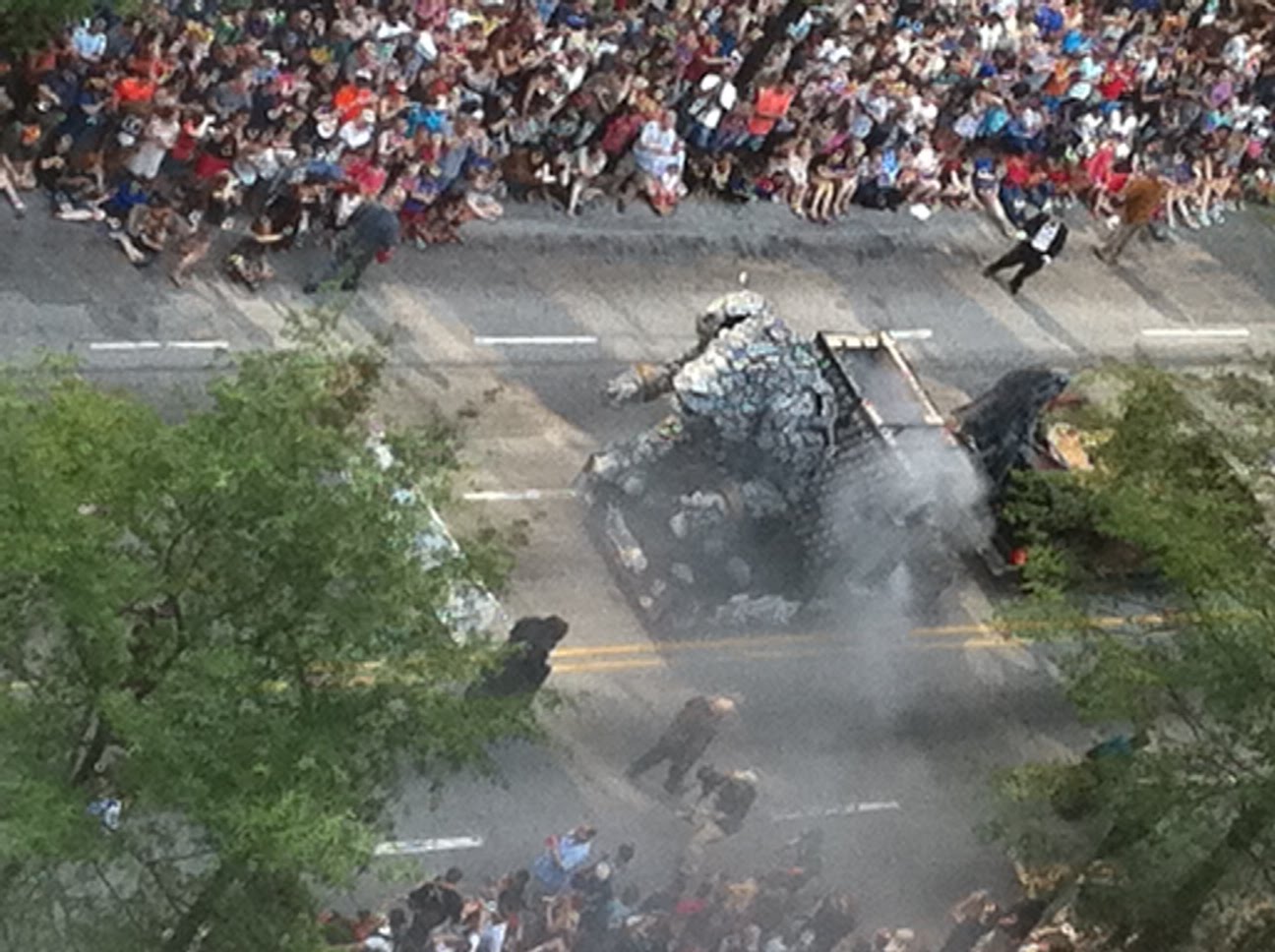 The event lasted about 45 minutes and contained hundreds of people in all sorts of costumes. Some entrants were even complex floats, such as this smoke-breathing rock monster.