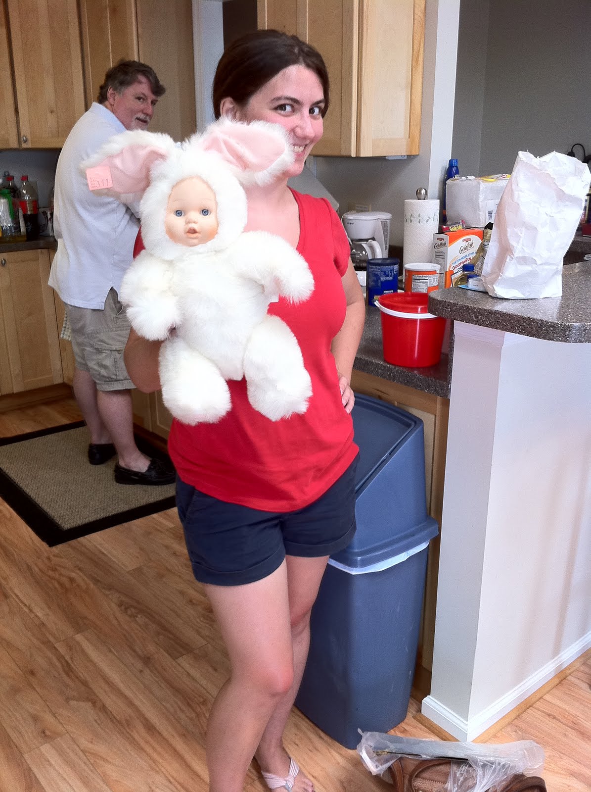 In other news of the beach, today in a bizarre little consignment shop we found this demented bunny-cum-baby toy.