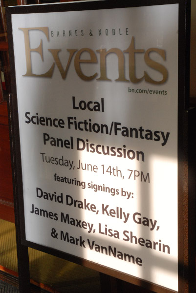 When you're on a panel, it's often difficult to assess your audience's honest reaction, so I can say only that it seems to me that Tuesday night's Barnes & Noble event went well. (Of course, I'd prefer they spell my name correctly, but I'm willing to trade that for having a lot of my books on hand, which the store did.)