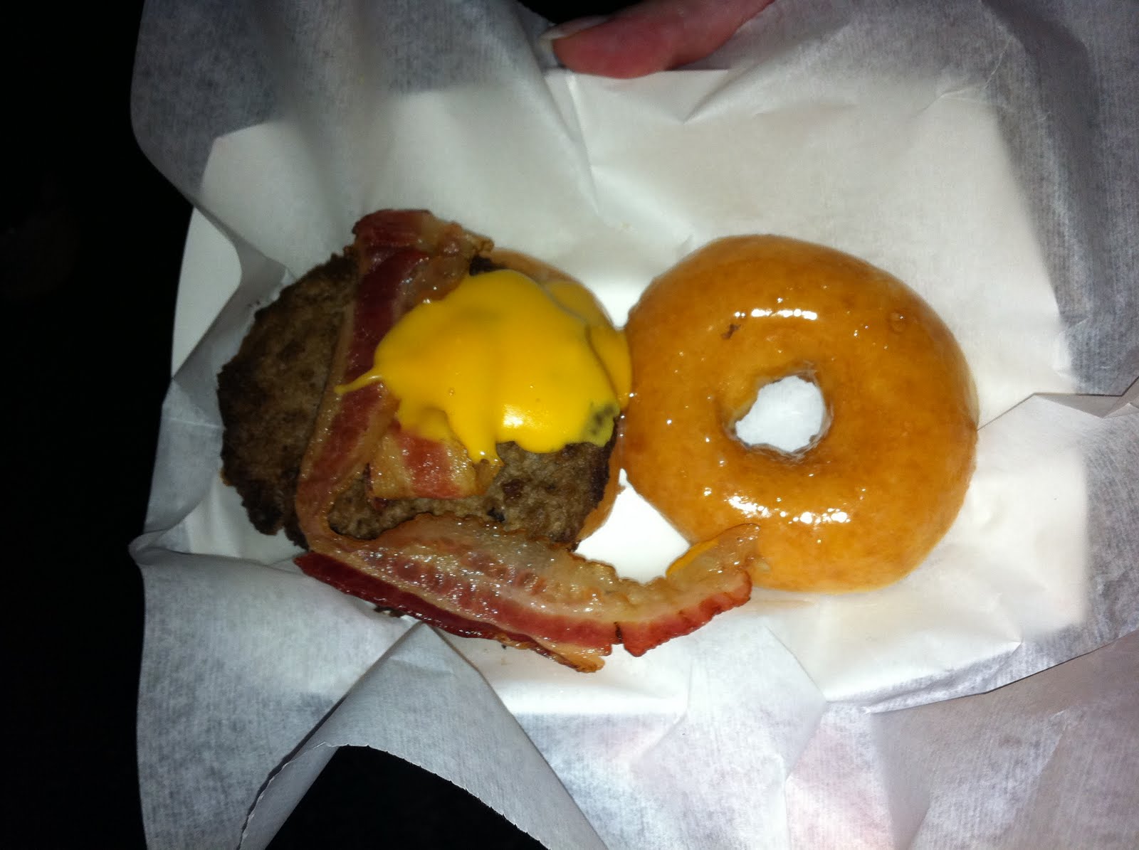 Come on: could you resist a Krispy Kreme cheese-and-bacon burger?