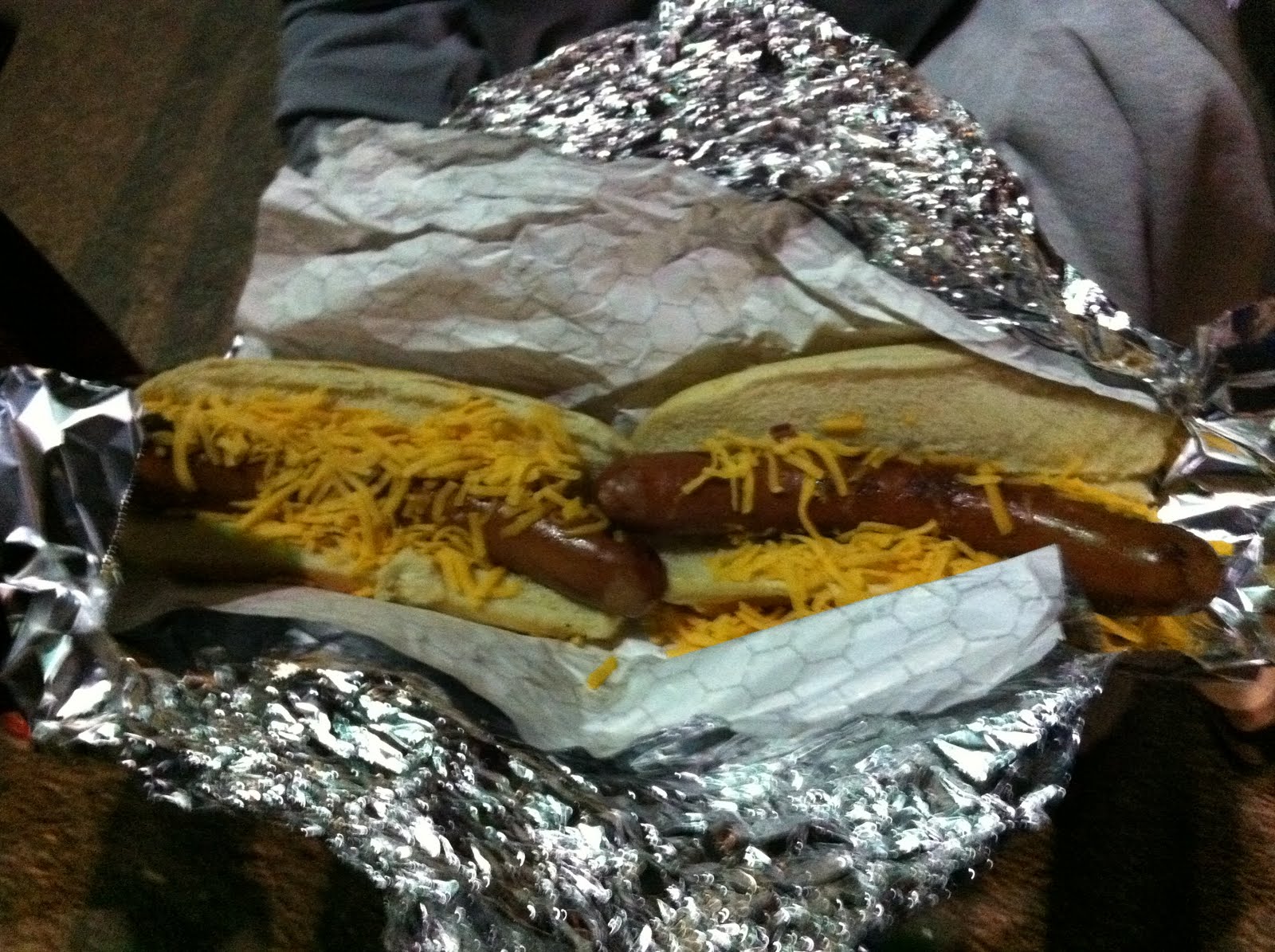 As you can see, a double-bun, one-pound hot dog is a beautiful thing to behold. We were all again pleasantly surprised by its taste: it was a damn fine tube steak, and easily the biggest I've ever seen.