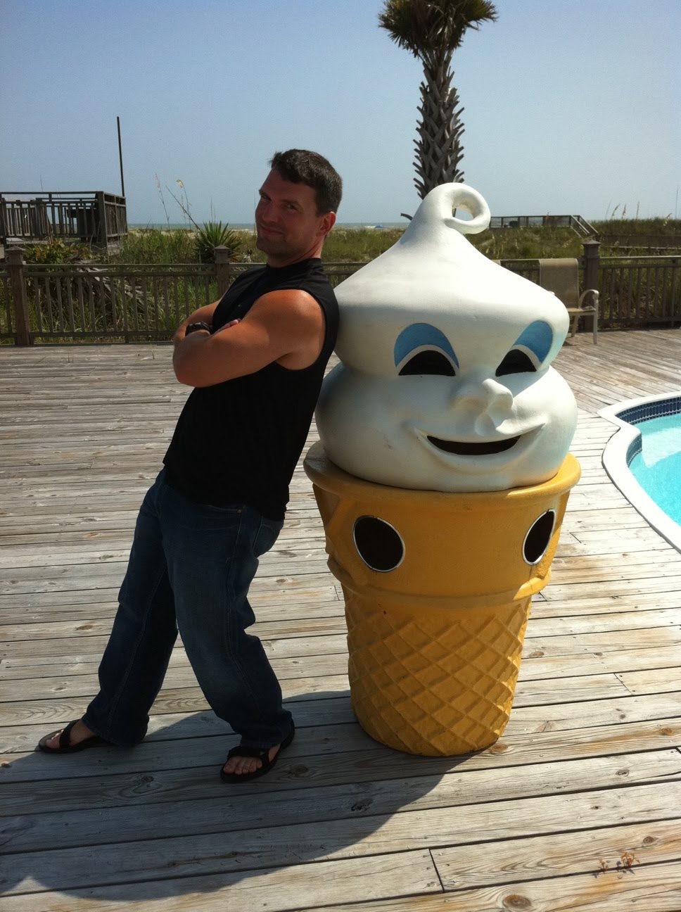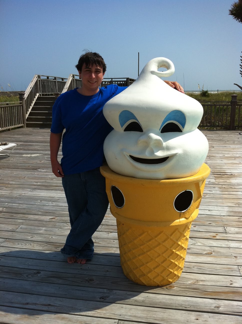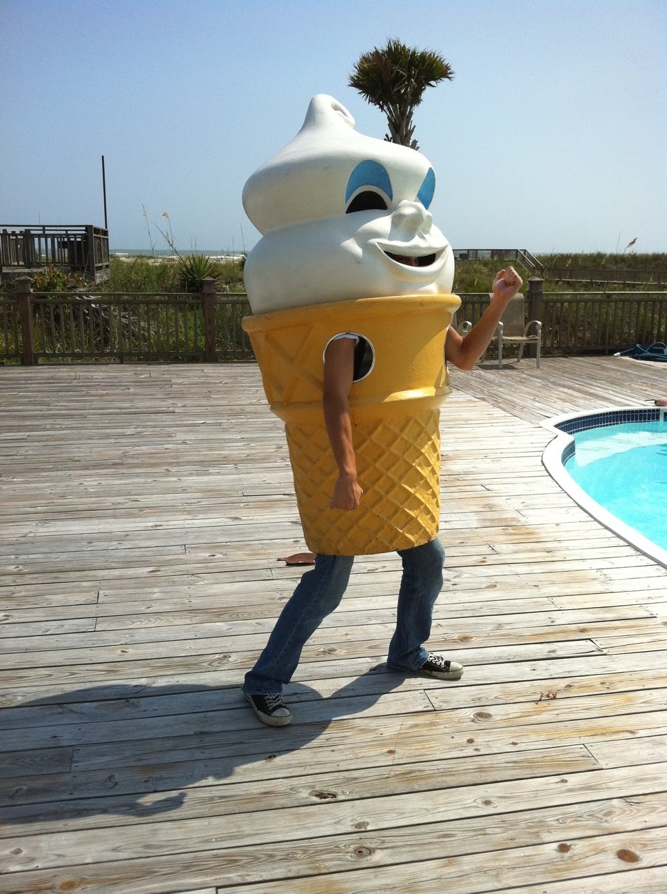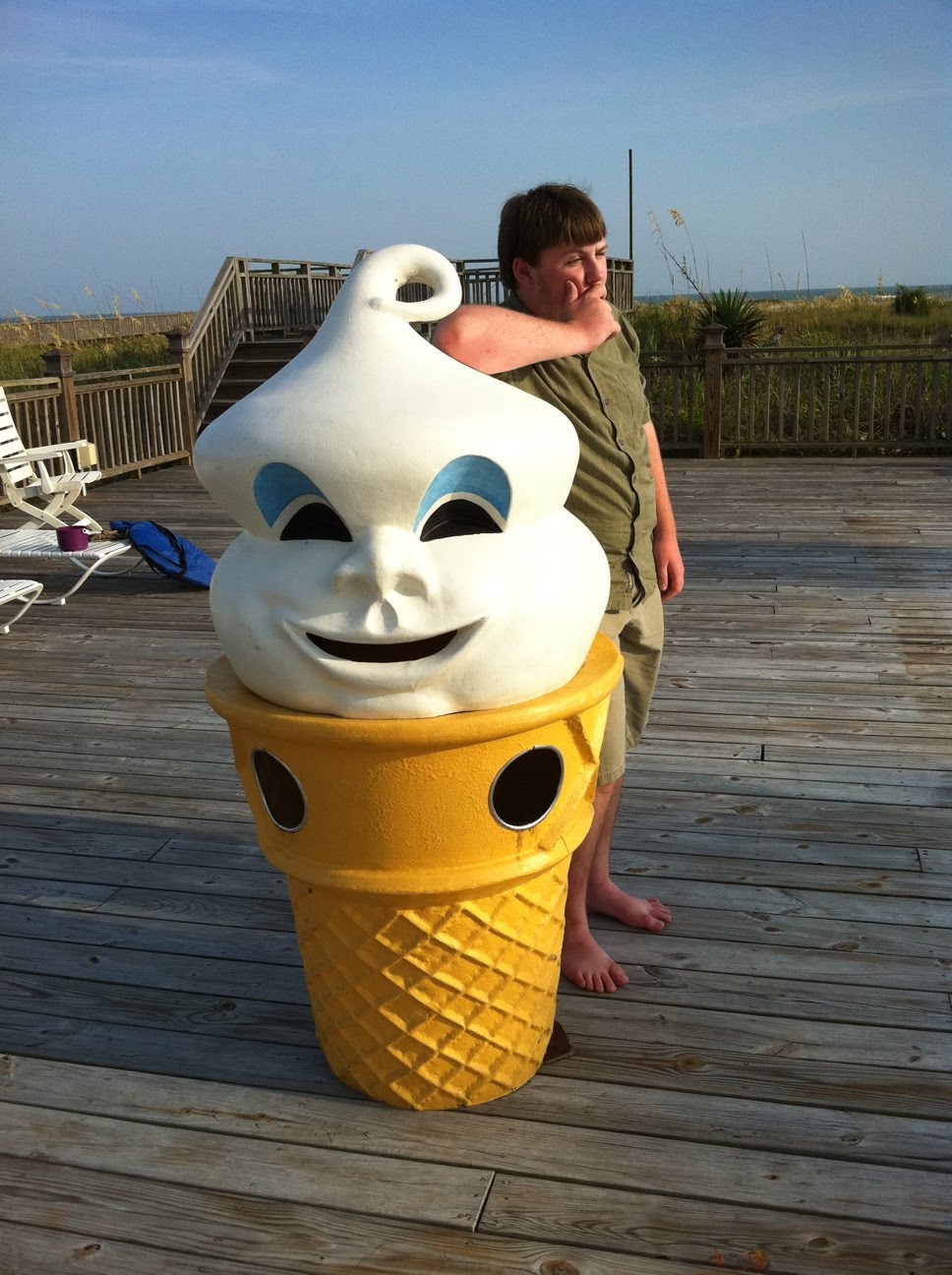 When we hit the beach this year, we were dismayed to learn that the ice cream shop that had housed the giant cone had closed. Fortunately, a while later we learned that a different shop had purchased the cone and had it standing in the corner, face to the wall, unwilling to display it proudly.