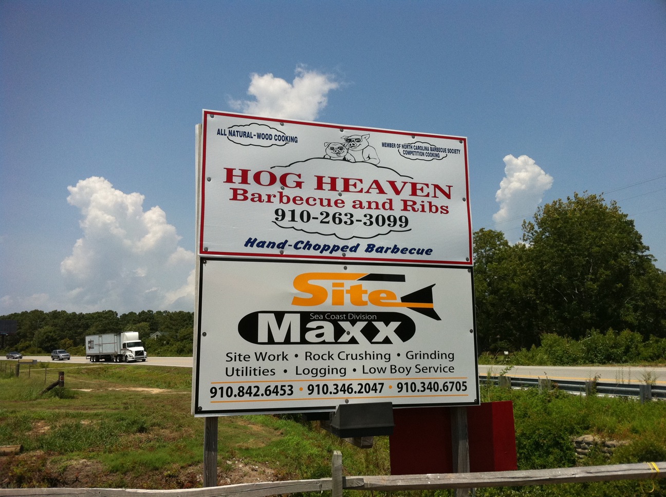 One group involves a barbecue joint that appears only three days a week and operates out of a trailer. We first noticed it from this sign on the side of the road.