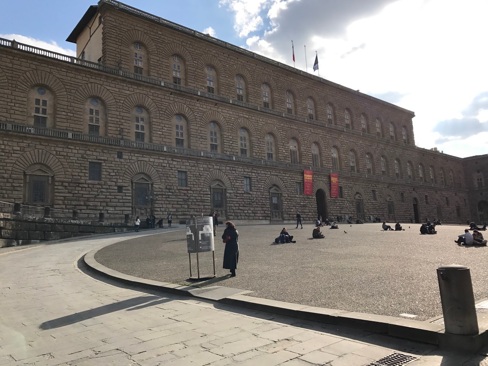 Click an image to see a larger version.With most museums closed, hours of ambling Florence's streets filled the day, with a short sitting break on the concrete in front of the Pitti Palace.