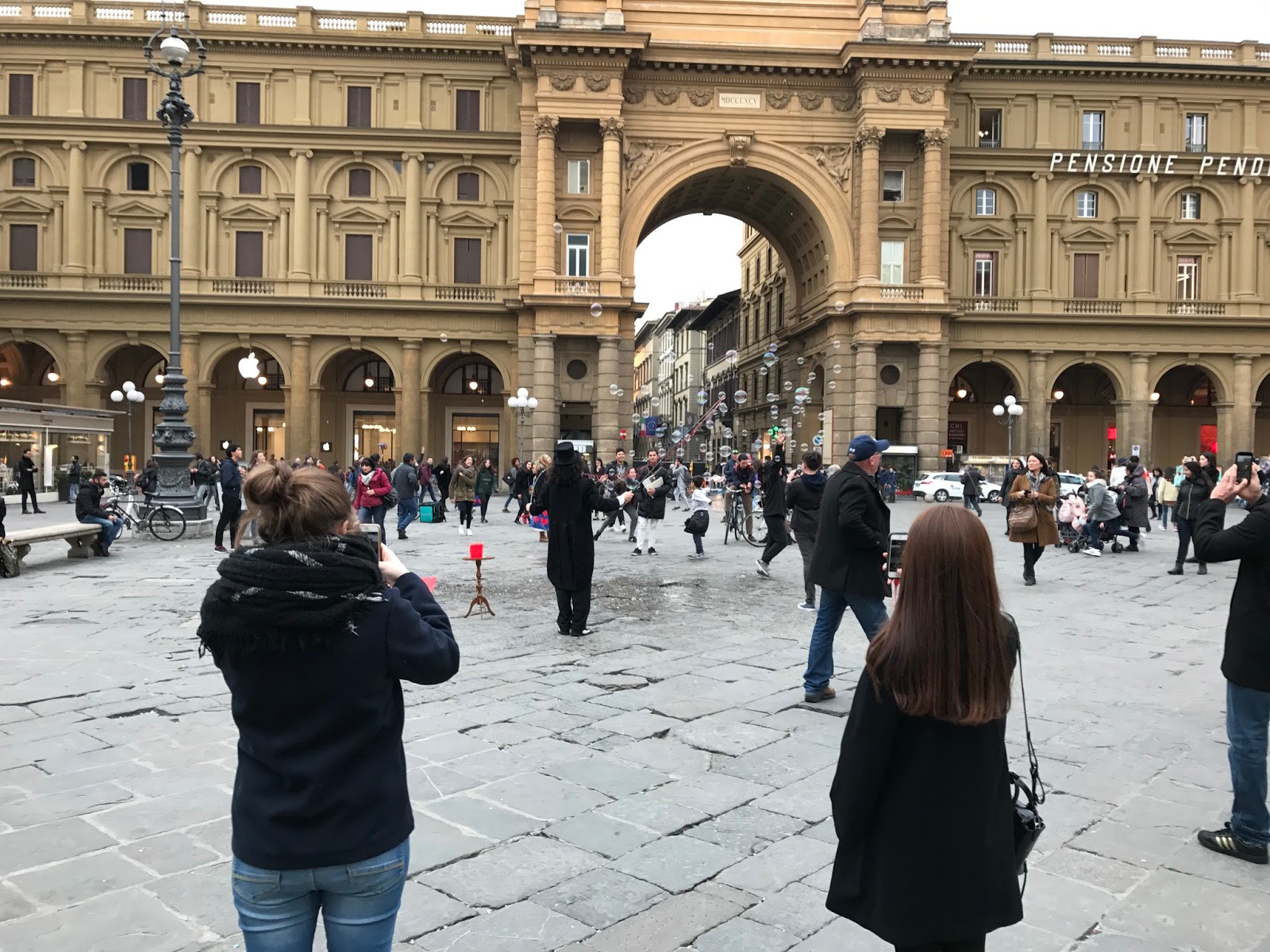 After some delicious Grom gelato--I've missed gelato only one day in Florence so far--I meandered by the main square in time to see a bubble-maker in a tux entertaining kids.