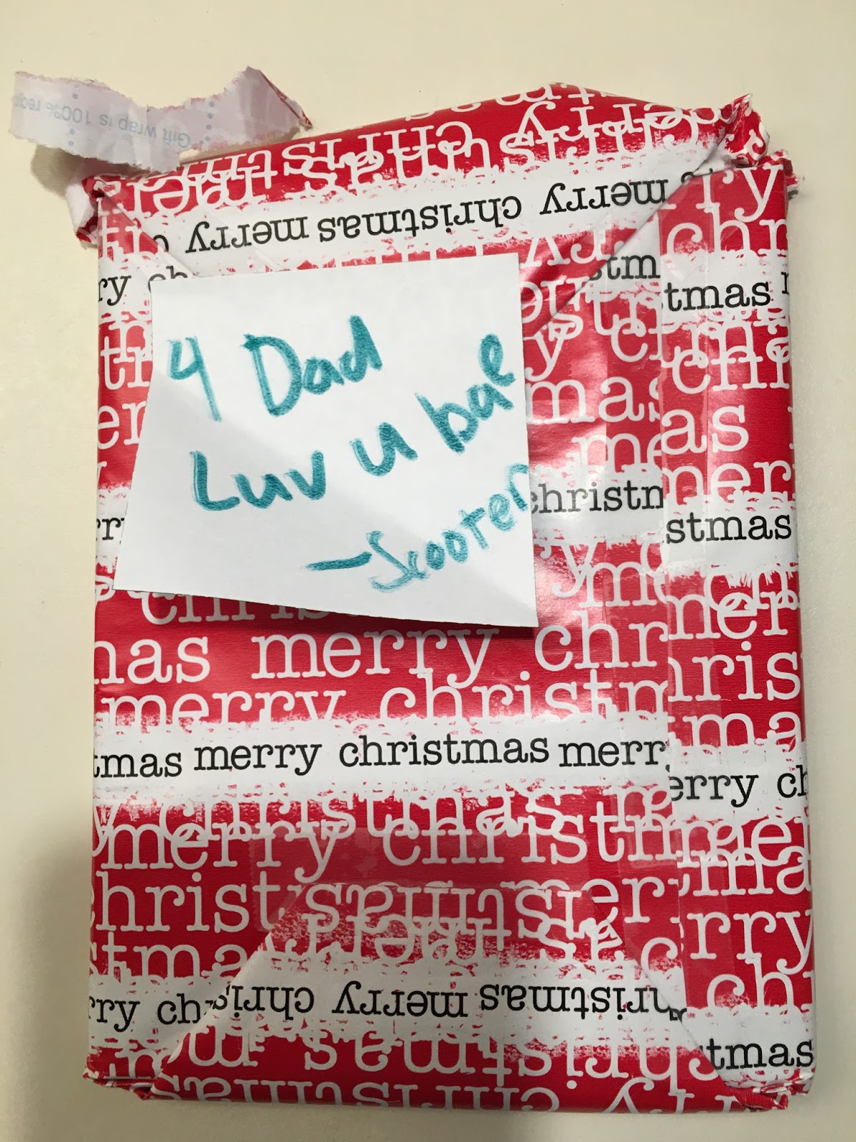 On the second gift, he started out being too lazy to repeat the full first tag, and then the family sense of humor surfaced.