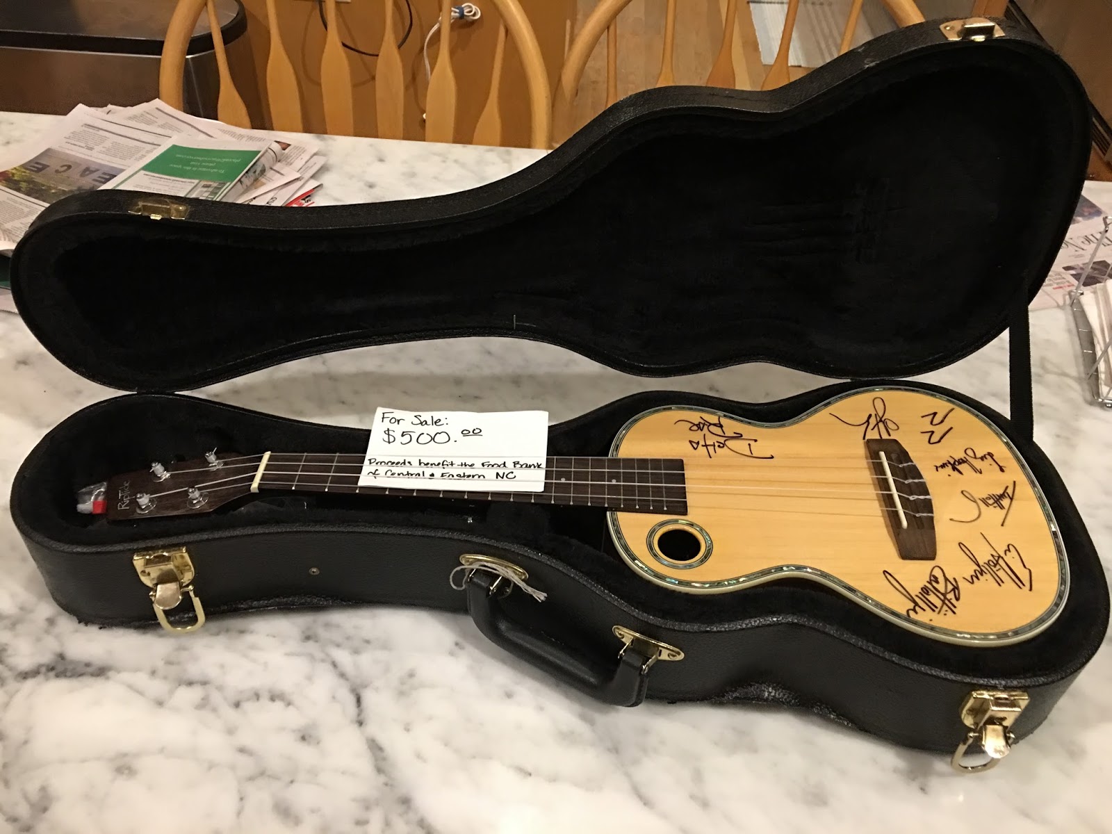 Near the end of their show, the Delta Rae folks encouraged us to hit the merch table and noted that on that very table was a ukulele they had used in the show--one they had both used and signed. All the money from whomever bought the instrument would go to the