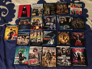 As has become a tradition, I'm wrapping up the beach reporting with a happy snap of all the movies we watched on Blu-ray discs and/or DVDs.