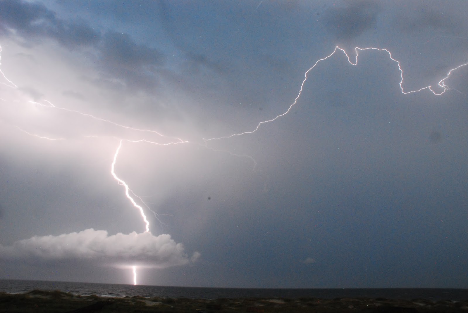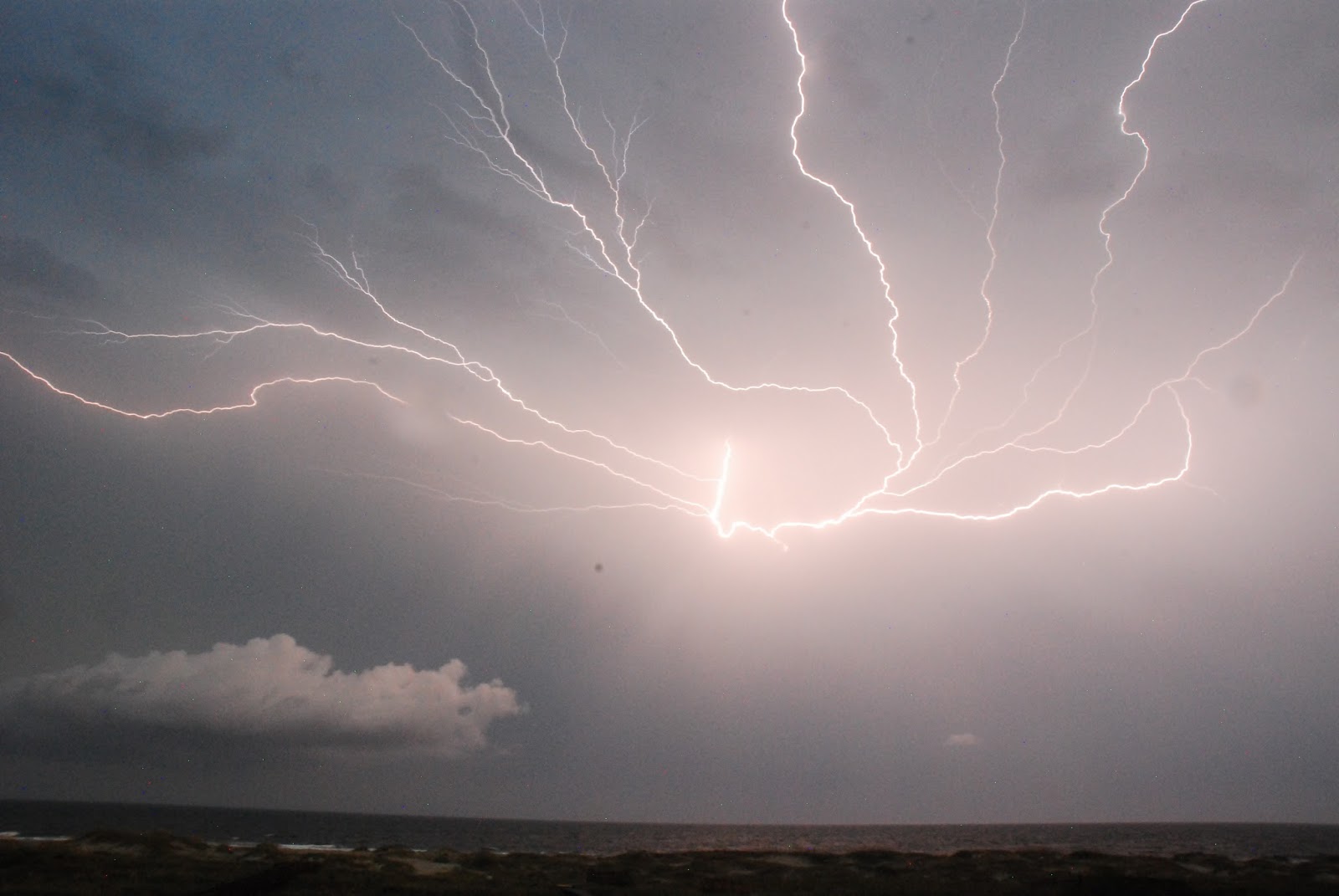 The most awesome sight of the day was the huge storm that blanketed the area, drenched us, and lit up the sky. Courtesy of Gina, I can share with you some of the great moments of lightning.