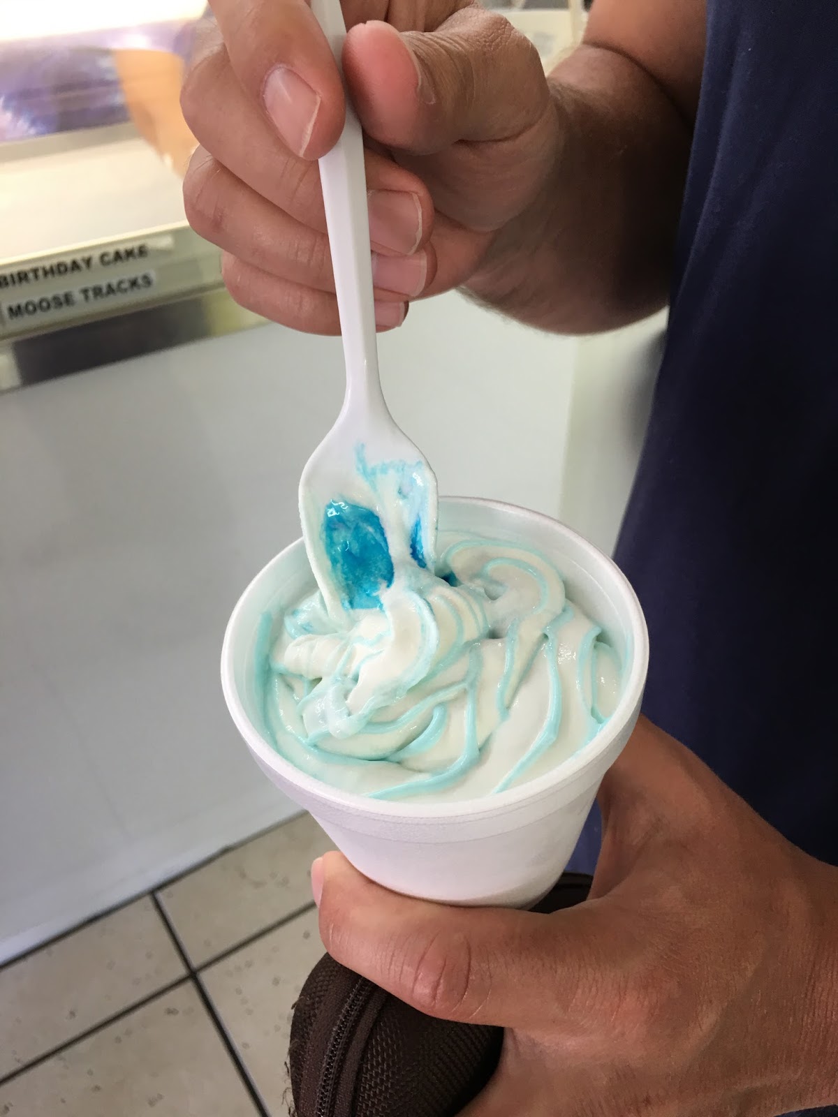 After lunch and errands today, a small group of us stopped by a local shop for a hit of The Squeeze (aka soft-serve ice cream with colorful flavor sauces woven into them).