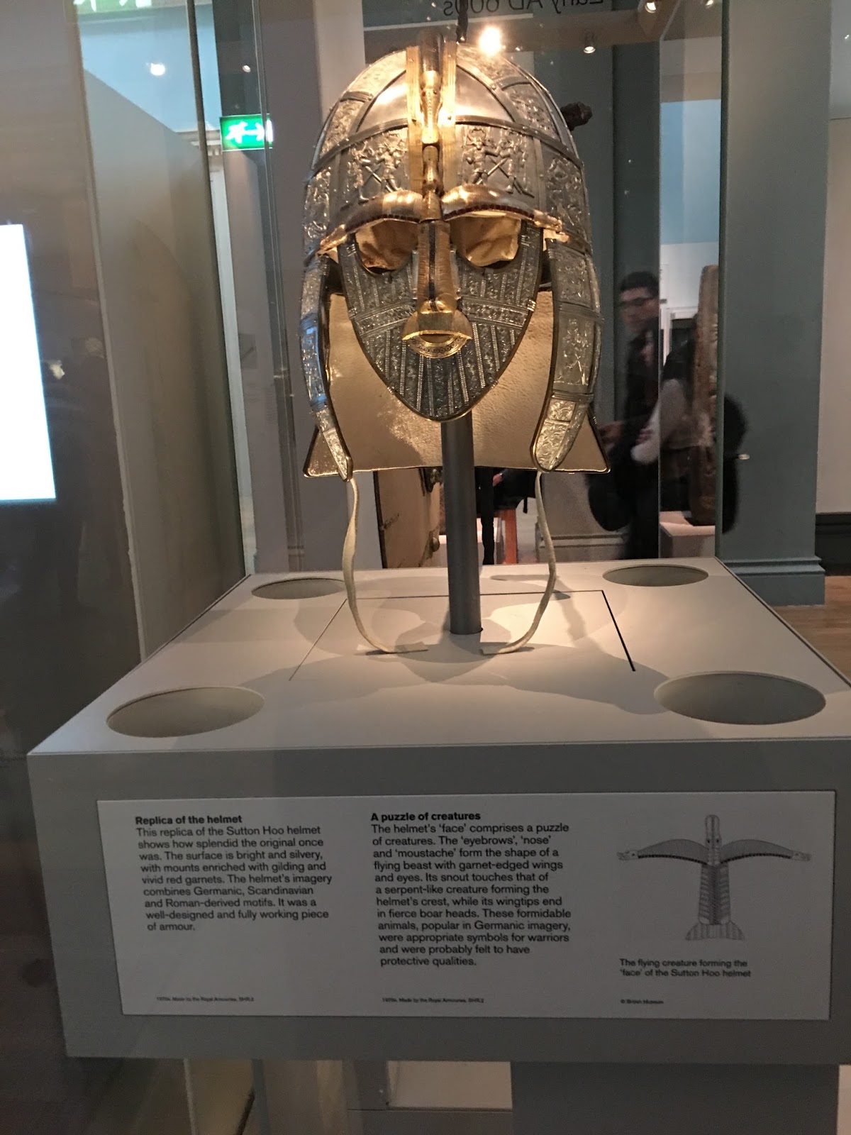 Next up was a return visit to the British Museum, again to follow a commenter's recommendation, this time to see the Sutton Hoo exhibit. (I caught more while I was there, of course, but this exhibit brought me back.) It was a small but powerful show, with a nifty selection of artifacts from Britain around 600 A.D. I particularly liked this battle helmet, which was amazingly well preserved and then restored,