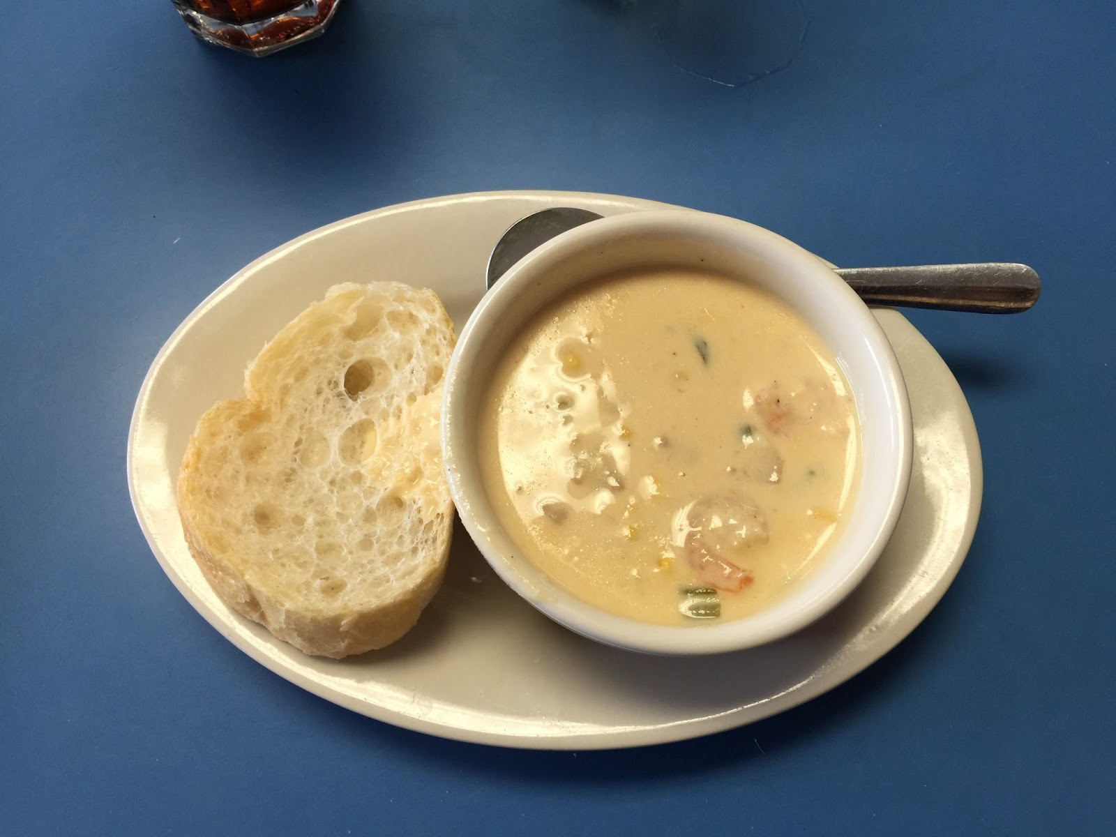 The food was simple but tasty. I had a cup of the shrimp and corn chowder, the stand-out dish of those I tasted.