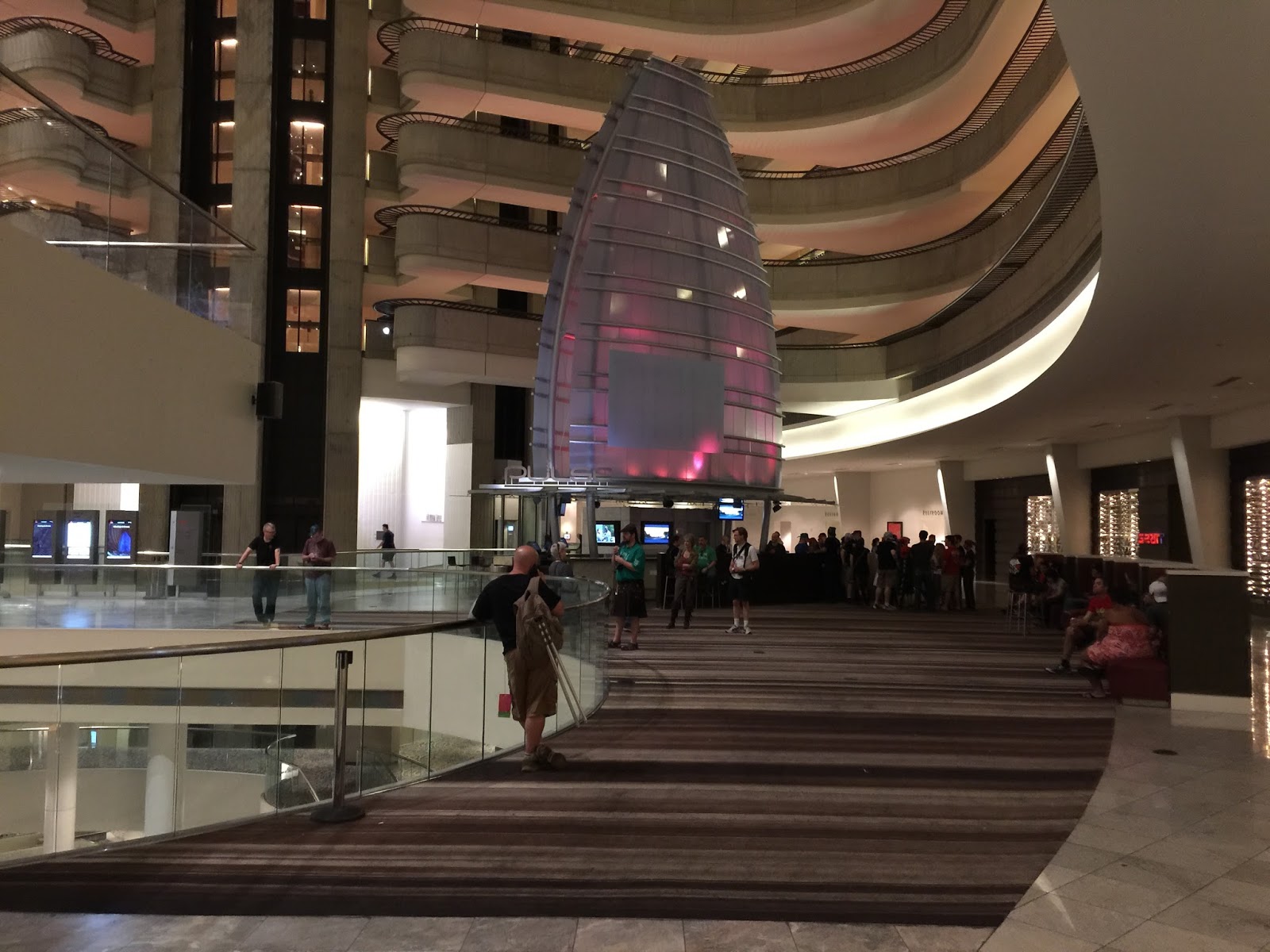 Click an image to see a larger version.In the middle of the evening, I made my final rounds of the big fan gathering places. The Hyatt's lobby was nearly entirely empty,