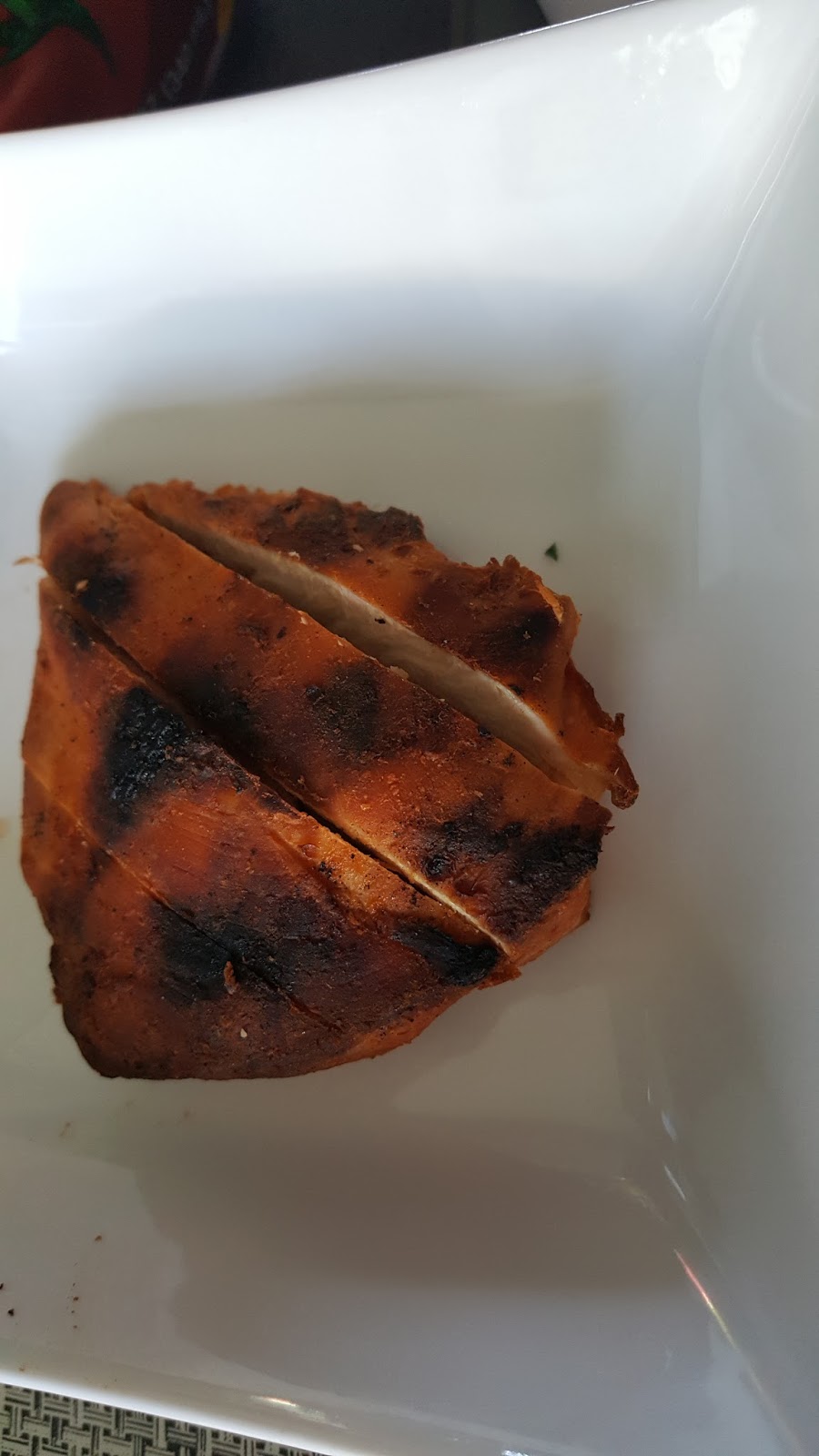 The lunch choice was chili or a "chicken salad." Given the condition of my gut, I went with the salad. The salad itself was bland and wilted but tolerable enough, but the meat was in a separate little container on the plate, and it was The Chicken of Sadness.
