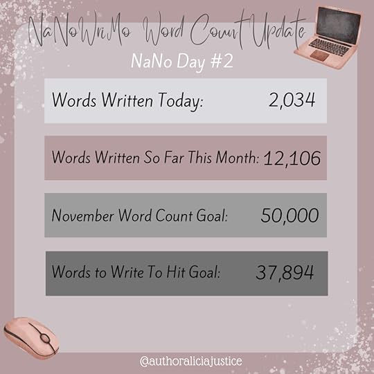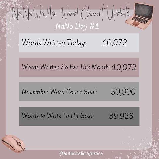 The first went well, I’m a head, which is something I do every year. I wrote 10k the first day, which was my plan. That way I’m ahead for those days when I can’t write or have other things going on. This way I don’t have to worry about those days.