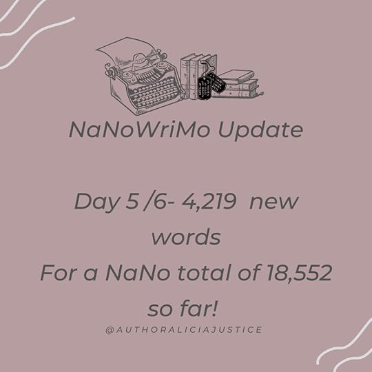 My week really was a great one, now writing doesn’t always come easy for everyone and it’s honestly not always easy for me. It just happened that way this year for me. I understand that I’m super lucky this year, it hasn’t always been easy to get the words down. Last year for example. I had a character completely change how I thought the book was going to go. I’m just happy it worked out for me this year.