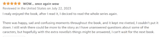 The Novella IS coming. I’m just struggling to get the cover just right. It will hopefully answer all the remaining questions. I don’t want to put the pre-order for the novella up until I have a cover.