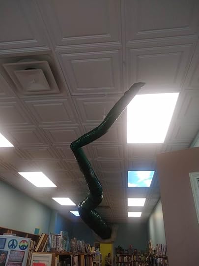It takes a dragon to find a dragon. Fellow author, A.R. Grimes and I, climbed onto the back of our trusted green dragon and flew far east and north in Menomonie, Wisconsin to visit Dragon Tale Book, a new bookstore near UW-Stout.