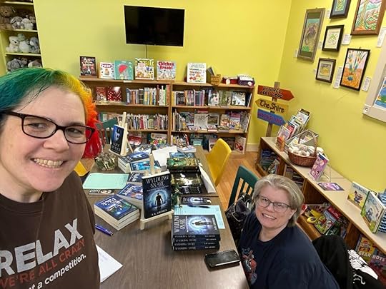 After setting up, A.R. Grimes and I even found a few hidden notes around the bookstore, a scavenger hunt they’ve provided for even more fun!