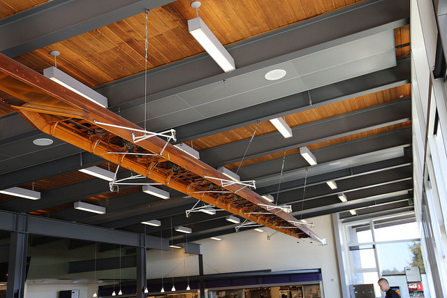 The 1936 Olympic rowing shell, the Husky Clipper, is now on display in the Conibear Shellhouse at the University of Washington. Photo by tedadavis/CeativeCommons