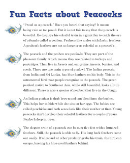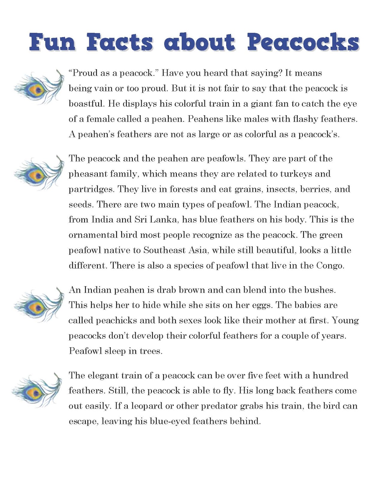 Choosing a distinctive trait of an animal and explaining why it came to be in a story is a fun exercise for writers of any age. Go one step further the way I did in Feathers for Peacock and ask your students to add a nonfiction addendum called Fun Facts About (whatever animal the story is about).