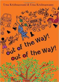 Let’s start with one of Uma’s own picture books, Out of the Way! Out of the Way! about a tree whose role and importance in the center of a village changes as the village becomes crowded, people age, roads are built and everyone is in a hurry.