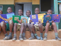 I must admit, I have a love-hate relationship with social media. While Facebook and Twitter can be entertaining and a great way to connect with friends and colleagues, it can also be a huge source of distraction. A five minute “check-in” can easily slip away into a half hour of wasted surfing. But once in a while, something wonderful pops up on your screen which makes that surfing time worthwhile.Last week, a photo appeared on my Facebook “wall”, posted by a publisher I have worked for. A group of boys from Uganda, proudly displayed books they were reading. One of the boys held a title I illustrated a few years ago. The photo was taken by an organization I had not heard about before-Libraries of Love. From the Libraries of Lovewebsite:
